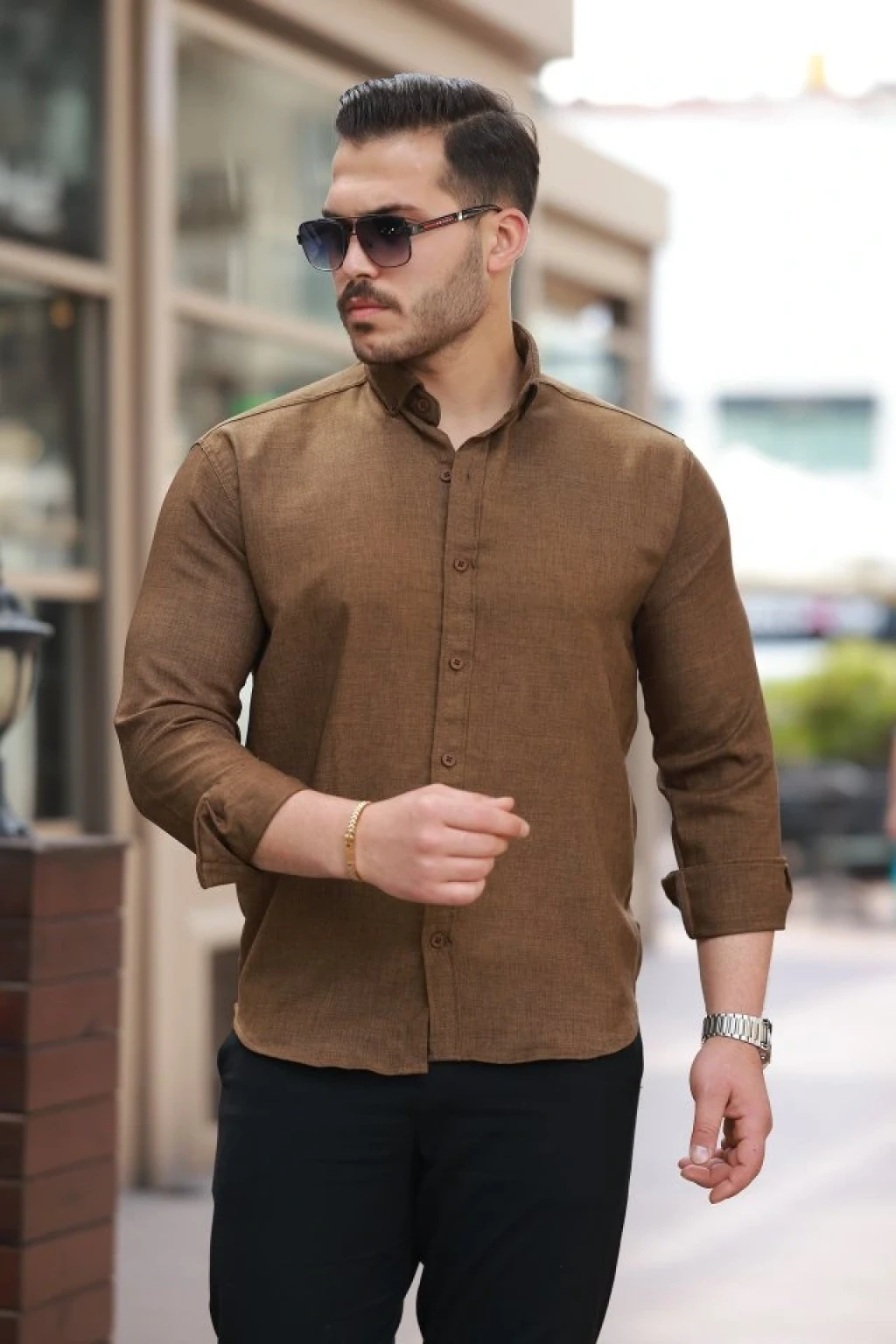 Erkek Uzun Kollu Hakim Yaka Düğmeli Erkek Müslim Gömlek