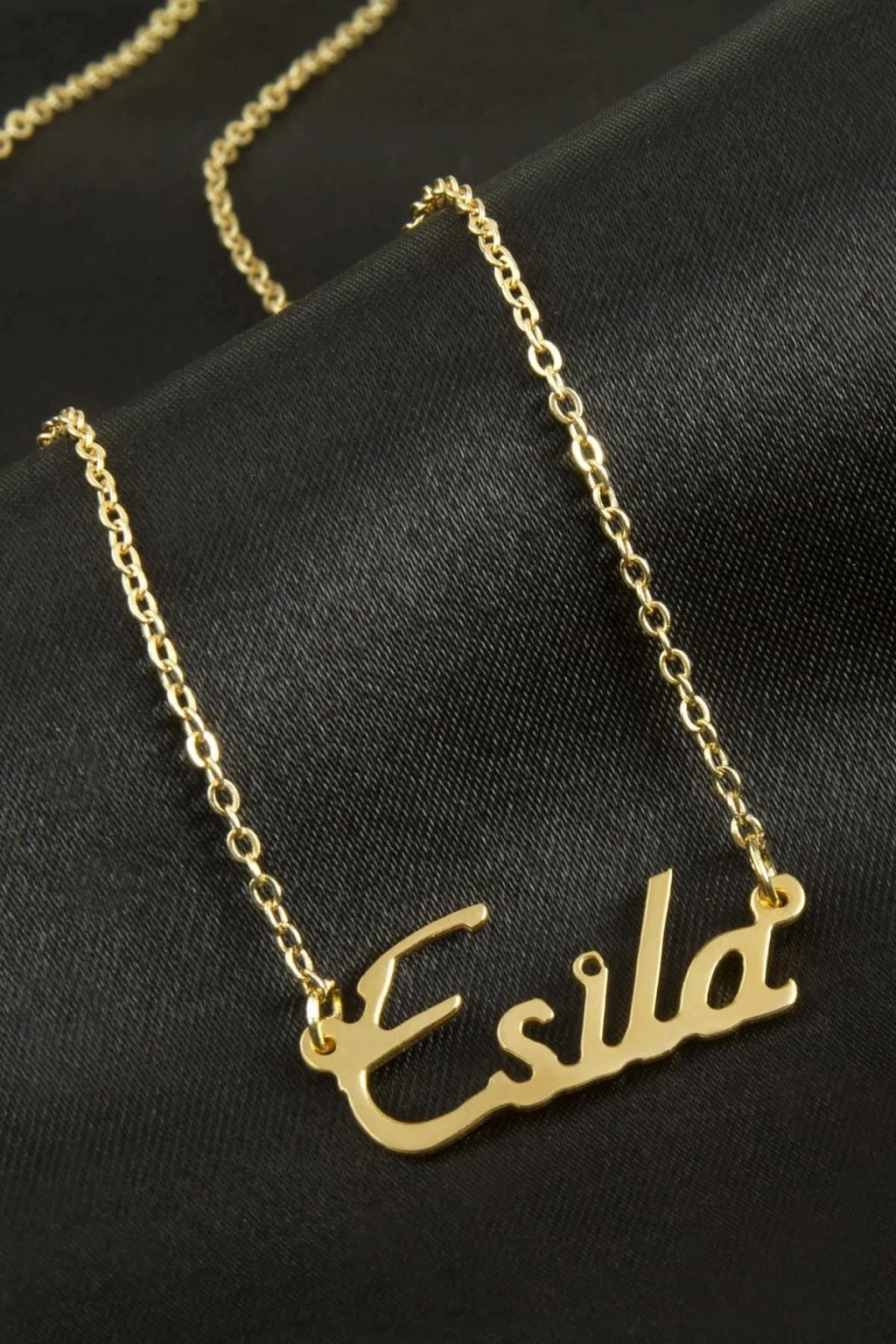 Esila İsimli Kolye. İsimli kolye pirinç madeninden ve altın kaplamalıdır. Kişiye özel üretilmektedir.Yazdırmak istediğiniz ismi bize mesaj olarak iletmeniz gerekmektedir. Kullanıma bağlı olarak uzun süre kullanıma uygundur. Ürün malzemesi 1.sınıf kalitededir. Ürün ve zinciri sarı renktedir. Ürün zincir boyu 45 cm ve ürün üzerindeki isimler yaklaşık 3 cmdir. İsim boyları ürün ismine göre degişiklik göstermektedir.