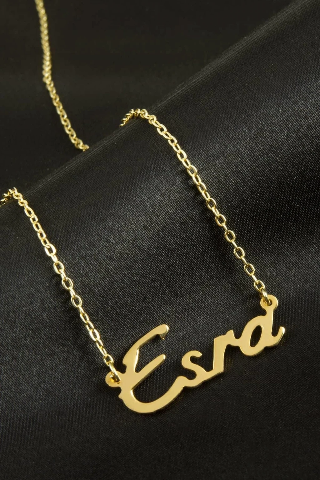 Esra isimli kolye. İsimli kolye pirinç madeninden ve altın kaplamalıdır. Kişiye özel üretilmektedir.Yazdırmak istediğiniz ismi bize mesaj olarak iletmeniz gerekmektedir. Kullanıma bağlı olarak uzun süre kullanıma uygundur. Ürün malzemesi 1.sınıf kalitededir. Ürün ve zinciri sarı renktedir. Ürün zincir boyu 45 cm ve ürün üzerindeki isimler yaklaşık 3 cmdir. İsim boyları ürün ismine göre degişiklik göstermektedir.