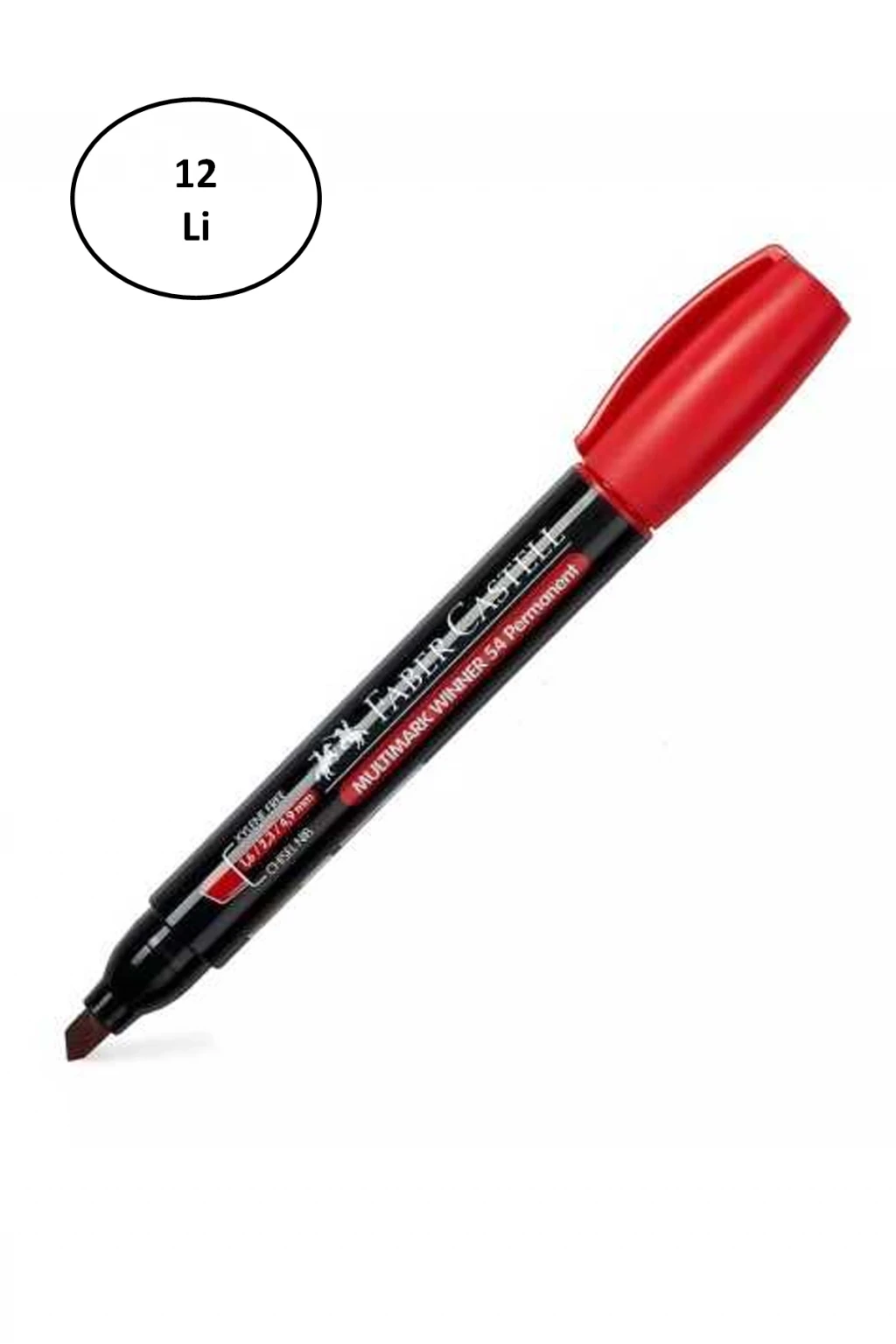 Faber Castell Permanent Markör 54 Kesik Uç Kırmızı Kalem 12'li