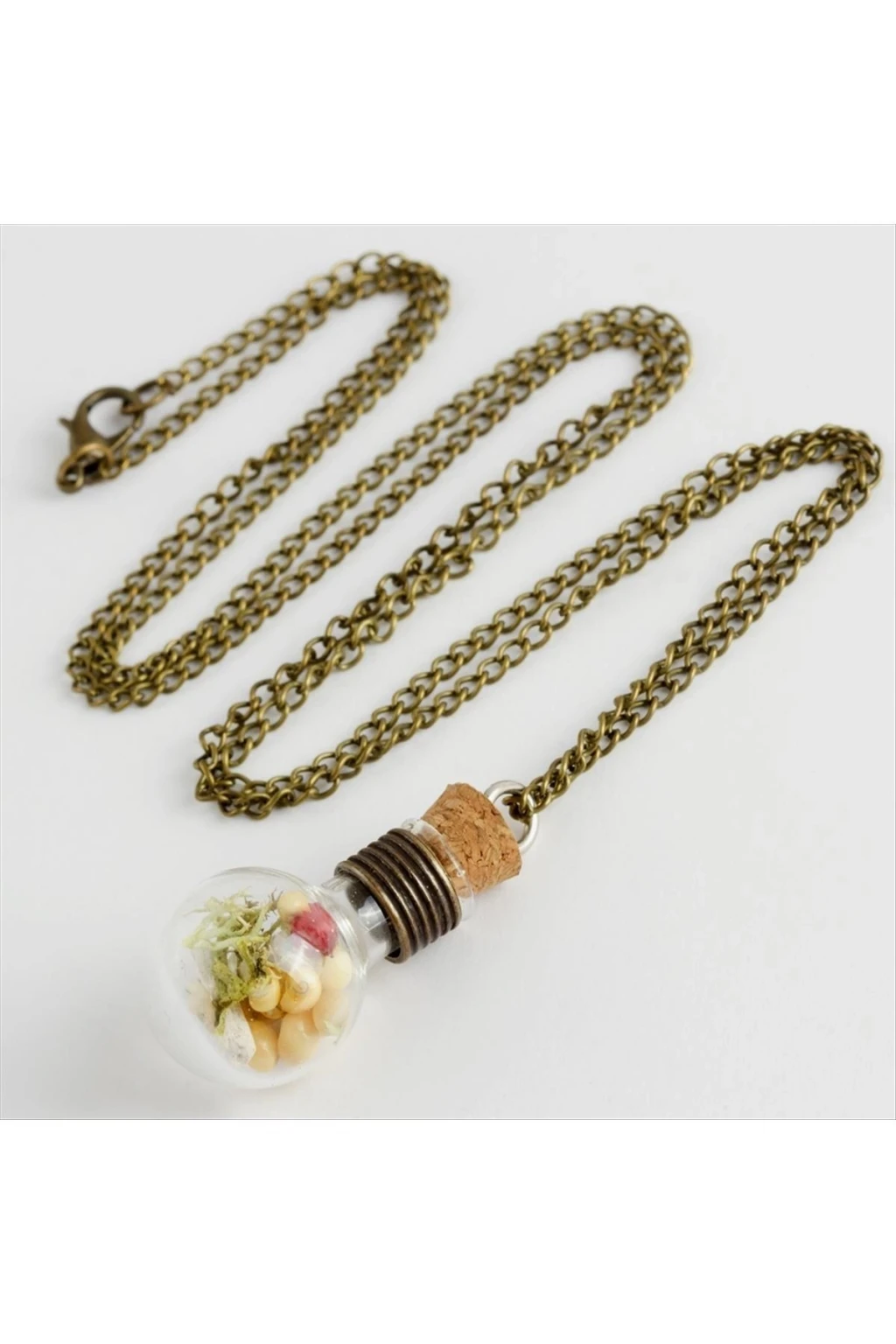 Canlı Kolye;Ürün malzemesi metal ve zincirdir.Ürün fanus taş ve boncuk ve çiçek çeşitleri bulunmaktadır.
