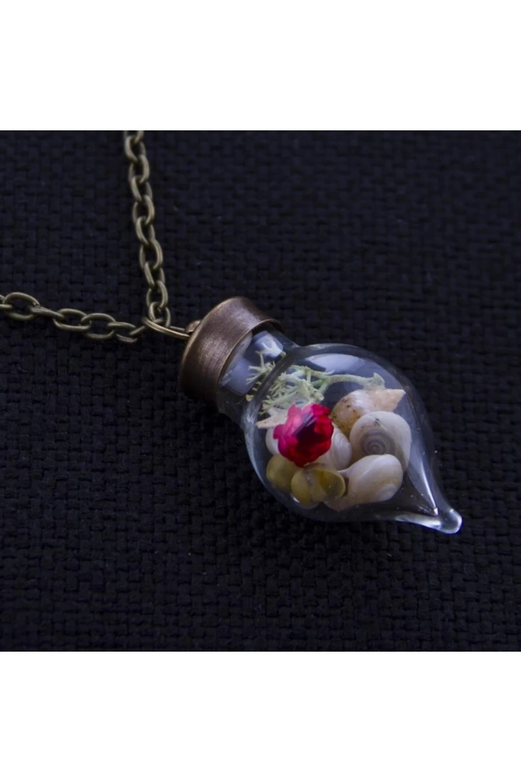 Canlı Kolye;Ürün malzemesi metal ve zincirdir.Ürün fanus taş ve boncuk ve çiçek çeşitleri bulunmaktadır.