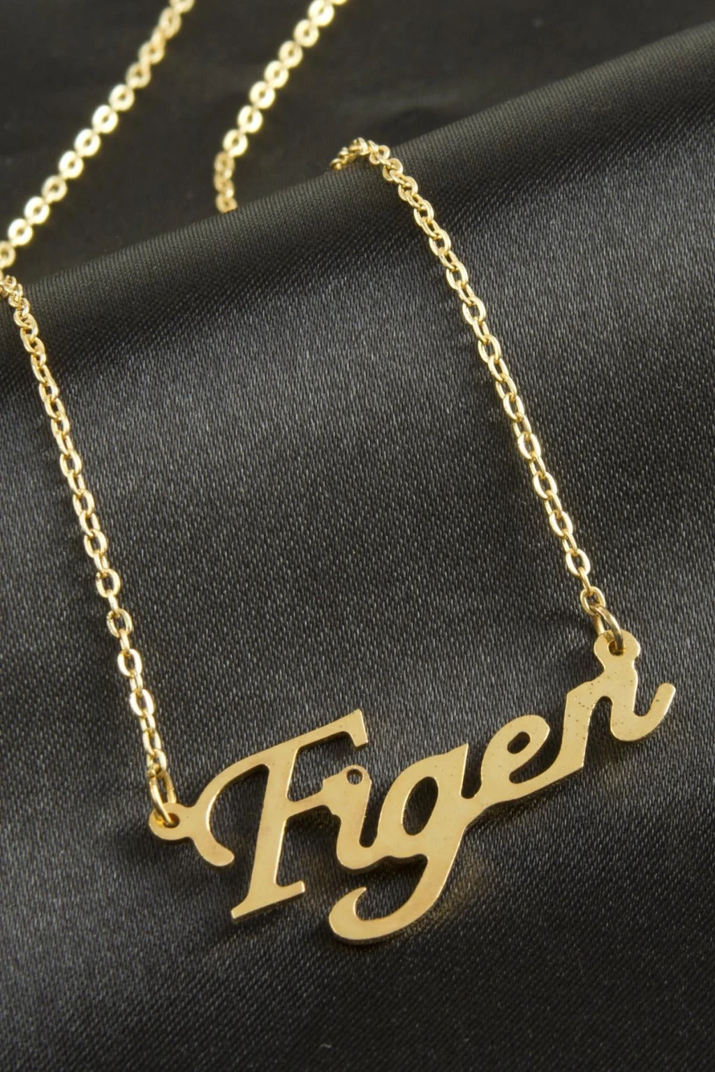 Figen isimli kolye. İsimli kolye pirinç madeninden ve altın kaplamalıdır. Kişiye özel üretilmektedir.Yazdırmak istediğiniz ismi bize mesaj olarak iletmeniz gerekmektedir. Kullanıma bağlı olarak uzun süre kullanıma uygundur. Ürün malzemesi 1.sınıf kalitededir. Ürün ve zinciri sarı renktedir. Ürün zincir boyu 45 cm ve ürün üzerindeki isimler yaklaşık 3 cmdir. İsim boyları ürün ismine göre degişiklik göstermektedir.