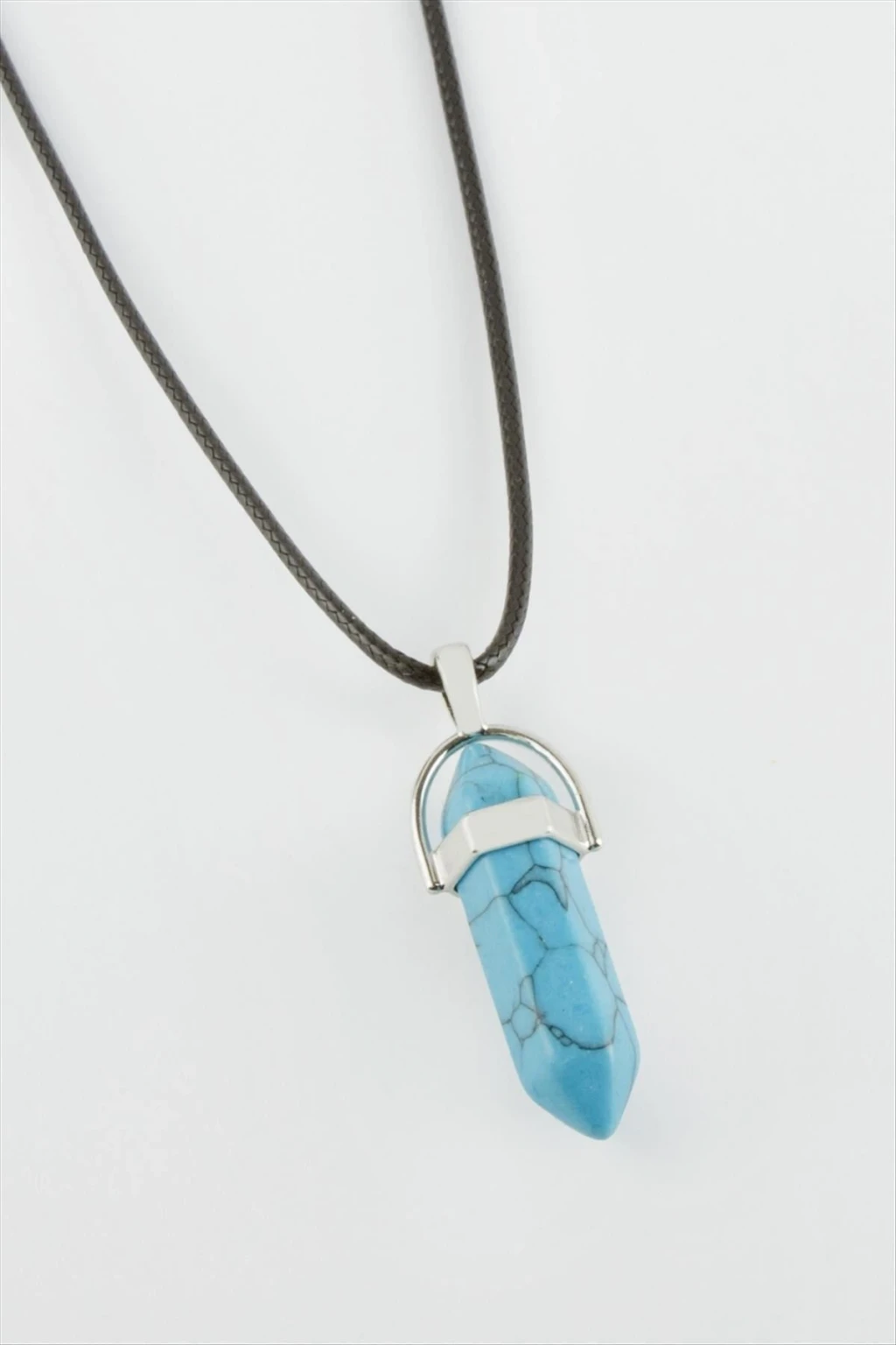 Kolye; Ürün malzemesi point taş ve metaldir. Ürün boyu 45 cmdir. Ürün ucundaki aparat boyu 3,5 cmdir. Ürün renklerinde doğaltaş oldukları için küçük farklılıklar gösterebilir.