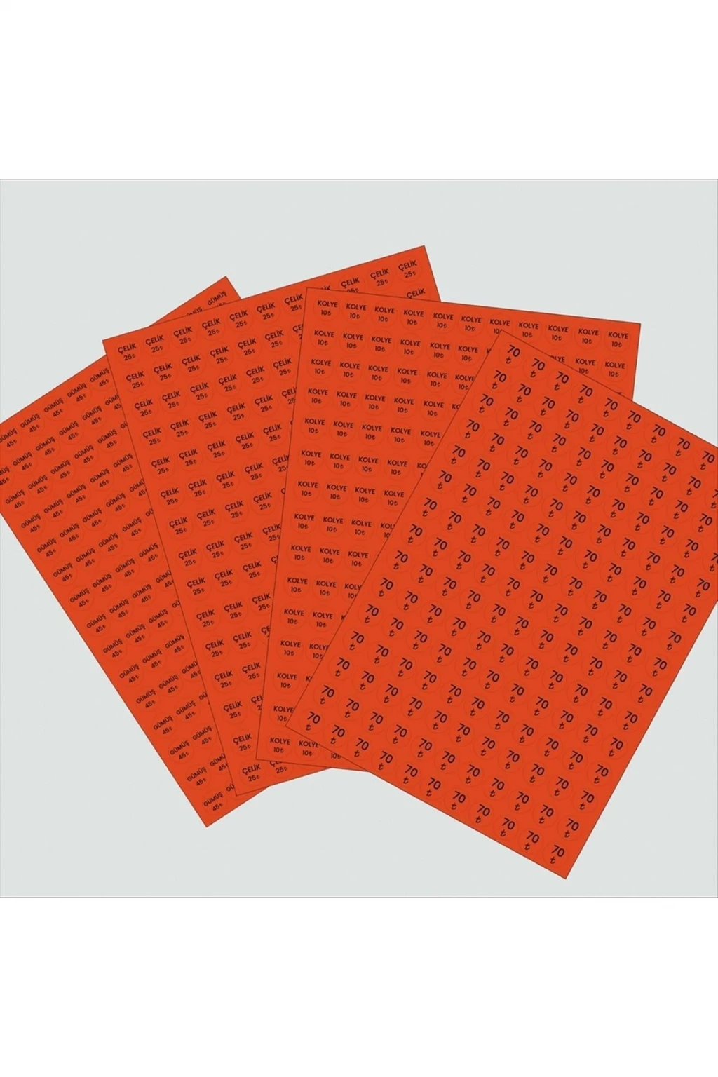Yapışkanlı fiyat etiketi isteğinize göre hazırlanmaktadır. Ürün isim ve fiyat şeklinde yazılmaktadır. Fiyat 1 sayfa içinde 165 adet için geçerlidir. Fosforlu turuncu renkte gönderilecektir. Ürün tek renktir. Ürün tek yapışkan çapı 15 mmdir. Siparişinizi verdikten sonra WhatsApp hattından bizimle iletişime geçebilirsiniz.