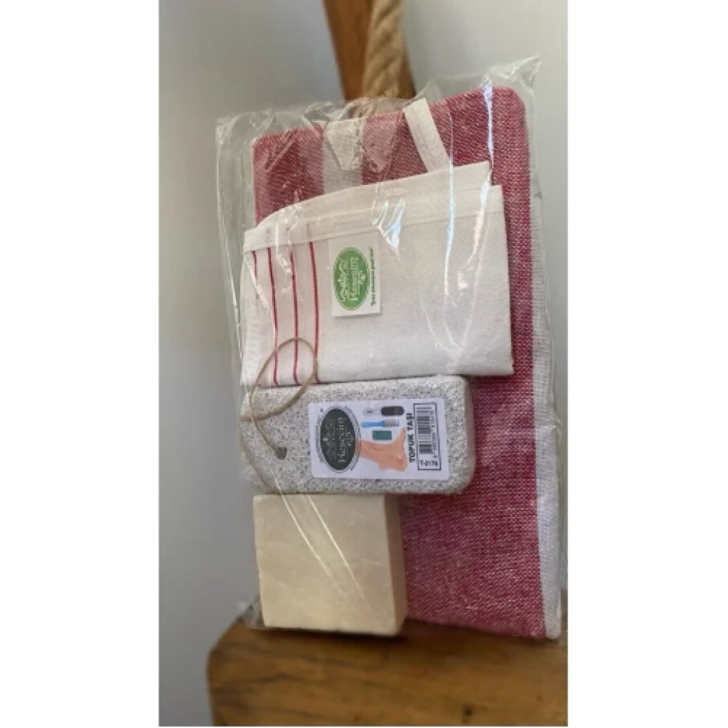 Hamam / Sauna / Duş / Plaj / Gelin Hamamı Seti ( Peştamel, Kese, Ponza Taşı , Doğal Hamam Sabunu ), hamam, sauna, duş, plaj ve gelin hamamı gibi farklı ortamlarda kullanıma uygun bir settir. Set, kaliteli malzemelerden üretilmiştir ve uzun ömürlüdür.Setin içeriği:%100 doğal pamuk malzemeden üretilmiş, yumuşak ve emici bir peştemaldir. Peştemal, ıslaklığı hızlı bir şekilde emerek vücudunuzu kurutmanıza ve üşümenizi önlemenize yardımcı olur. Ayrıca, cildinizi tahriş etmeyen yumuşak dokusu ile rahat bir kullanım sağlar.Kese: %100 doğal keten malzemeden üretilmiş, cilt temizliği ve ölü derilerden arındırma için kullanılan bir kesedir. Kese, cildinizin ölü derilerden arınmasına ve daha sağlıklı görünmesine yardımcı olur. Ayrıca, kan dolaşımını hızlandırarak cildinizin daha canlı görünmesini sağlar.Ponza Taşı: Nasır ve çatlakları gidermek için kullanılan bir taştır. Ponza taşı, nasır ve çatlakların giderilmesine yardımcı olur. Ayrıca, cildinizin daha pürüzsüz görünmesine yardımcı olur.Doğal Hamam Sabunu: Zeytinyağı, sabun otu ve gül suyu gibi doğal malzemelerden üretilmiş, cildin nemlenmesine ve yumuşamasına yardımcı olan bir sabundur. Doğal hamam sabunu, cildinizin nemlenmesine ve yumuşamasına yardımcı olur. Ayrıca, cildinizin doğal ışıltısını korumasına yardımcı olur.Setin faydaları:Kullanışlı ve pratiktir.Kaliteli malzemelerden üretilmiştir ve uzun ömürlüdür.Farklı ortamlarda kullanıma uygundur.Cildinizi temizler ve ölü derilerden arındırır.Nasır ve çatlakları gidermeye yardımcı olur.Saç ve sakal bakımını kolaylaştırır.Dikkat edilmesi gerekenler:Peştemal, kullanım sonrası ılık suda yıkanabilir ve ütülenebilir.Hamam tası, kullanım sonrası sabunlu suyla yıkanmalıdır.Kese, kullanım sonrası sabunlu suyla yıkanmalı ve sıkılmalıdır.Ponza taşı, kullanım sonrası sabunlu suyla yıkanmalıdır.Doğal Hamam Sabunu, kullanım sonrası kuru bir yerde saklanmalıdır.Hamam / Sauna / Duş / Plaj / Gelin Hamamı Seti ( Peştamel, Kese, Ponza Taşı , Doğal Hamam Sabunu ), hamam keyfinizi daha konforlu ve keyifli hale getirmeye yardımcı olacak bir settir.Seti aşağıdaki durumlarda kullanabilirsiniz:Hamam keyfiniz içinSauna keyfiniz içinDuş keyfiniz içinPlaj keyfiniz içinGelin hamamı için