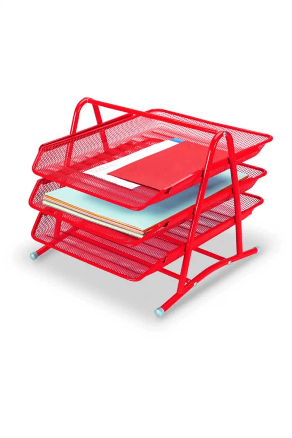 Gıpta 3 Katlı Hareketli Metal Evrak Rafı Kırmızı F0002
