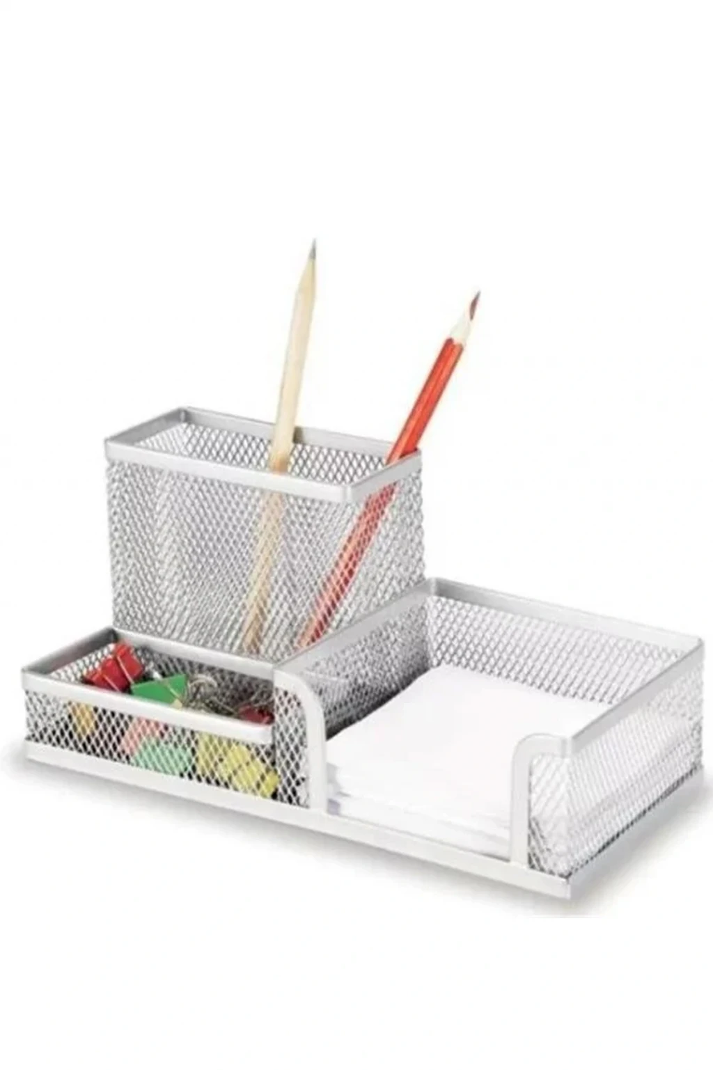 Gıpta Metal Masa Seti – 3 Gözlü Organizer Gümüş