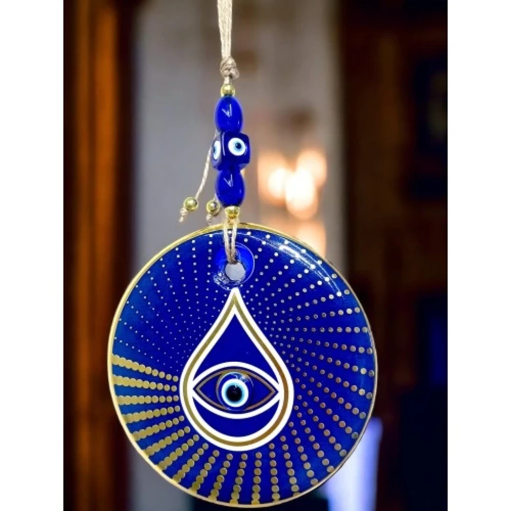 Gold Puantiyeli Mavi Cam Nazar Boncuklu Göz Duvar Süsü