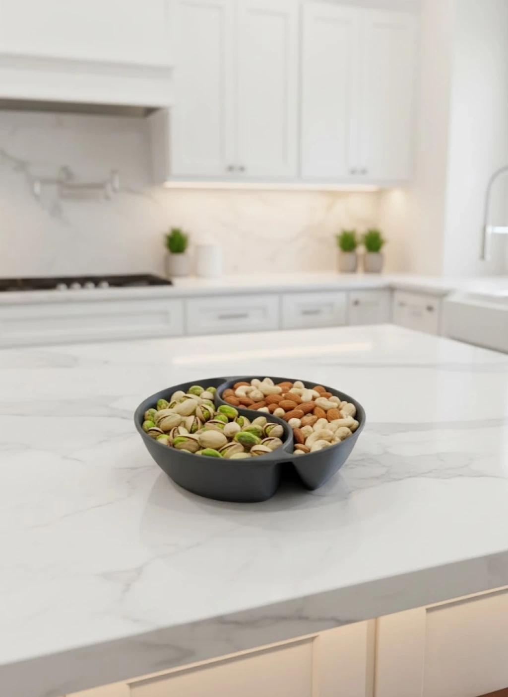 Modern ve sade tasarımıyla öne çıkan gri çerezlik kase seti, hem günlük kullanım hem de misafir sunumları için ideal bir çözüm sunar. Set içerisinde yer alan 4 adet kase, bölmeli yapısı sayesinde farklı çerezleri, kuruyemişleri veya atıştırmalıkları birbirine karıştırmadan servis etmenizi sağlar. Minimal formu ve nötr gri rengi ile salon, oturma odası ve mutfak dekorasyonuna kolayca uyum sağlar.Loş ya da aydınlık ortamlarda estetik bir görünüm sunan bu çerezlikler, sehpa üzerinde, masa üstünde veya raflarda şık bir tamamlayıcı olarak kullanılabilir. Dayanıklı yapısı sayesinde uzun süreli kullanıma uygundur ve günlük temizlikte pratiklik sağlar. Film geceleri, davetler, kahve sunumları ve özel günlerde düzenli ve zarif bir sunum arayanlar için ideal bir tercihtir.