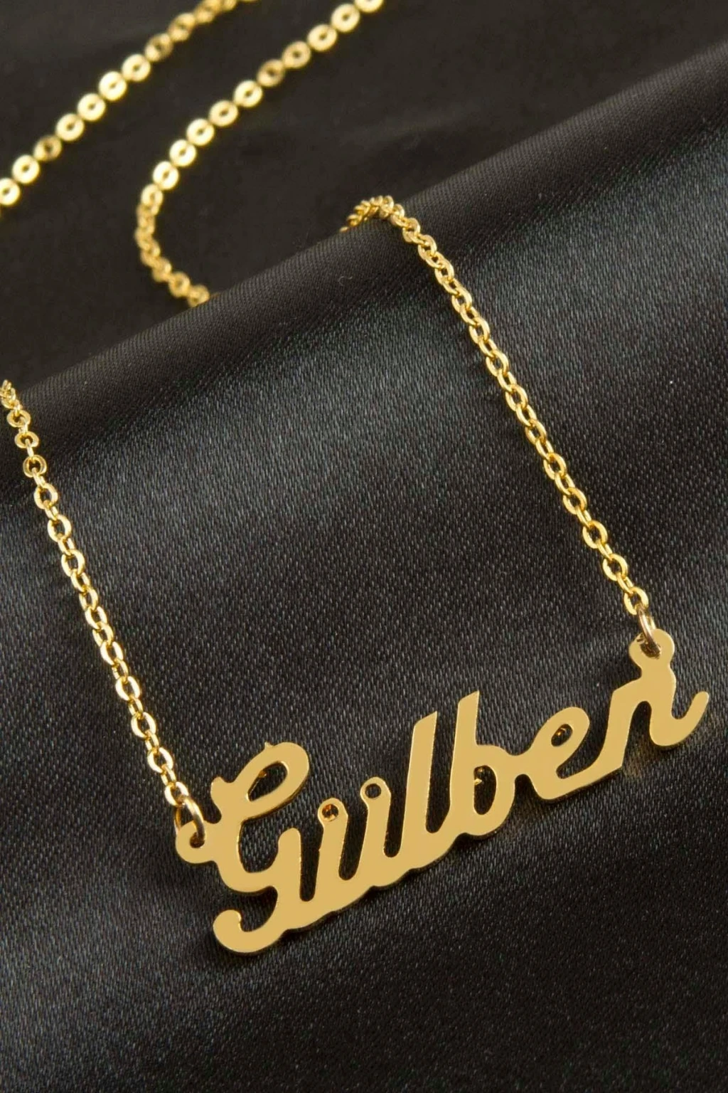 Gülben isimli kolye. İsimli kolye pirinç madeninden ve altın kaplamalıdır. Kişiye özel üretilmektedir.Yazdırmak istediğiniz ismi bize mesaj olarak iletmeniz gerekmektedir. Kullanıma bağlı olarak uzun süre kullanıma uygundur. Ürün malzemesi 1.sınıf kalitededir. Ürün ve zinciri sarı renktedir. Ürün zincir boyu 45 cm ve ürün üzerindeki isimler yaklaşık 3 cmdir. İsim boyları ürün ismine göre degişiklik göstermektedir.