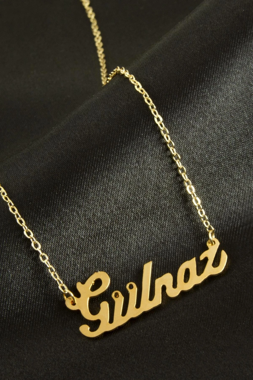 Gülnaz İsimli Kolye. İsimli kolye pirinç madeninden ve altın kaplamalıdır. Kişiye özel üretilmektedir.Yazdırmak istediğiniz ismi bize mesaj olarak iletmeniz gerekmektedir. Kullanıma bağlı olarak uzun süre kullanıma uygundur. Ürün malzemesi 1.sınıf kalitededir. Ürün ve zinciri sarı renktedir. Ürün zincir boyu 45 cm ve ürün üzerindeki isimler yaklaşık 3 cmdir. İsim boyları ürün ismine göre degişiklik göstermektedir.