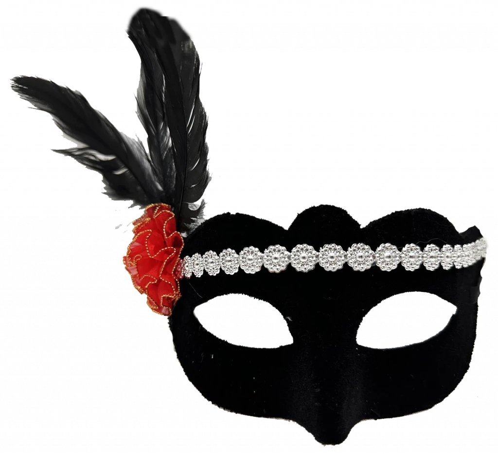 Gümüş Dantelli Kırmızı Gül Tasarımlı Parti Maskesi