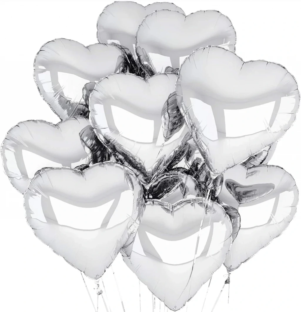 Gümüş Kalp Şekilli Uçan Balon Folyo 10 Adet