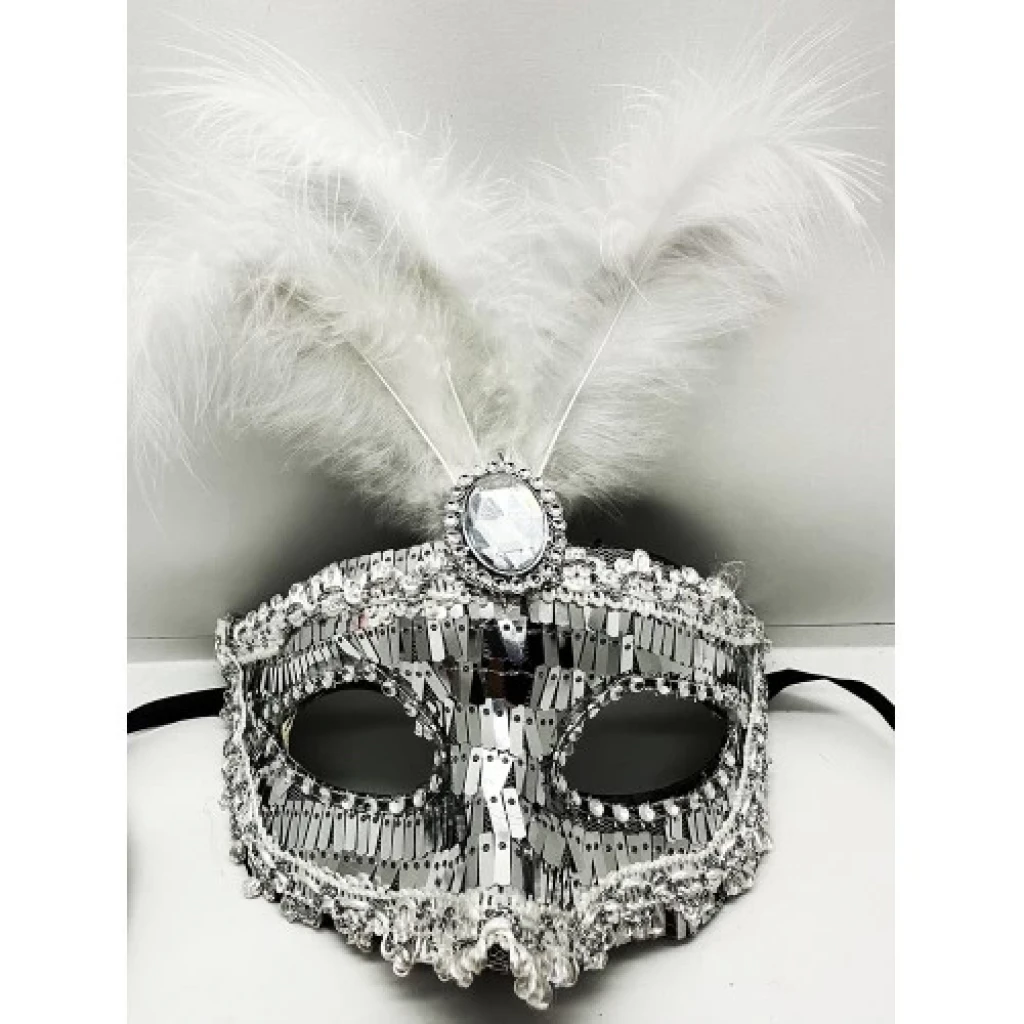 Gümüş Payetli Pullu Tüylü Parti Maskesi