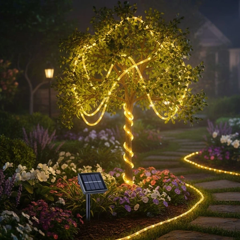 GÜNEŞ ENERJİLİ 12 METRE BAHÇE AYDINLATMAÜrün ÖzellikleriGüneş enerjili 12 metre bahçe aydınlatma, şık tasarımı ve uzun kablo yapısı sayesinde bahçeler, yürüyüş yolları, teraslar ve ağaç süslemeleri için ideal bir çözümdür. Solar paneli sayesinde gün boyunca güneş ışığını depolayarak akşam hava karardığında otomatik olarak yanar ve bahçenize dekoratif bir görünüm kazandırır. Kablo üzerinde yer alan LED’ler güçlü aydınlatma sağlarken düşük enerji tüketimi ile çevre dostu kullanım imkânı sunar. IP65 su geçirmez özelliği sayesinde yağmur ve nemli ortamlarda da güvenle kullanılabilir. Kolay kurulum özelliği sayesinde kablolama ya da elektrik bağlantısına ihtiyaç duymazsınız.Paket İçeriği1 adet Güneş Enerjili 12 Metre Bahçe Aydınlatma