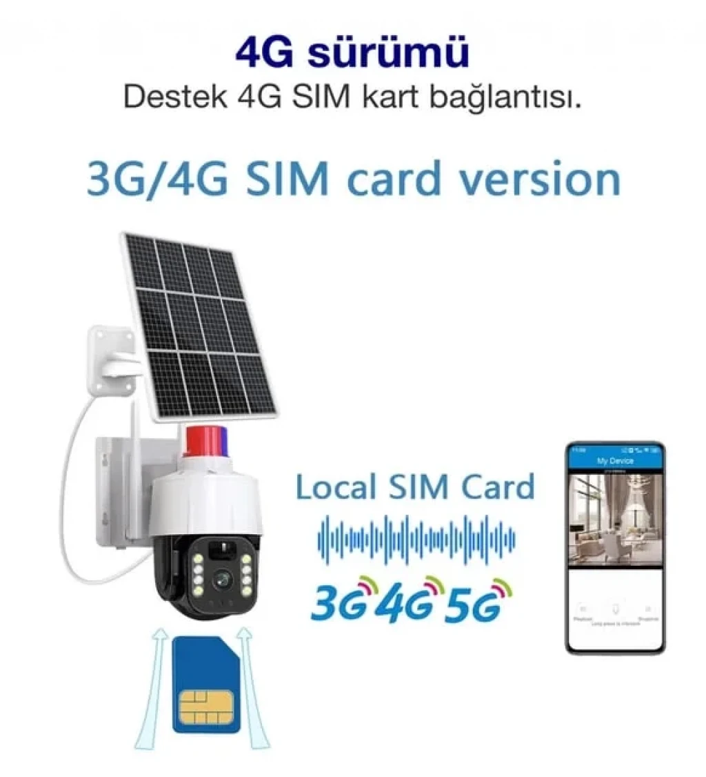 CR46 Güneş Panelli Sim Kart İle Çalışan 4G+ Wi-Fi 5MP Outdoor Dış Mekan Güvenlik Kamerası