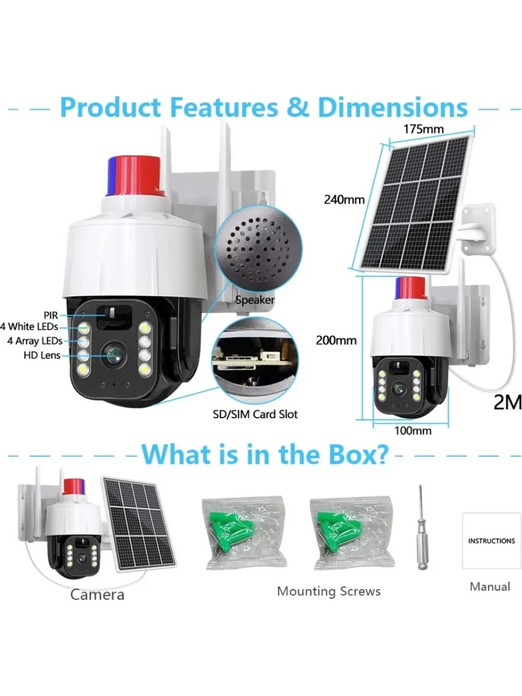 Güneş Panelli Sim Kart Ile Çalışan 4g+ Wi-Fi 5mp Outdoor Dış Mekan Güvenlik Kamerası - Beyaz