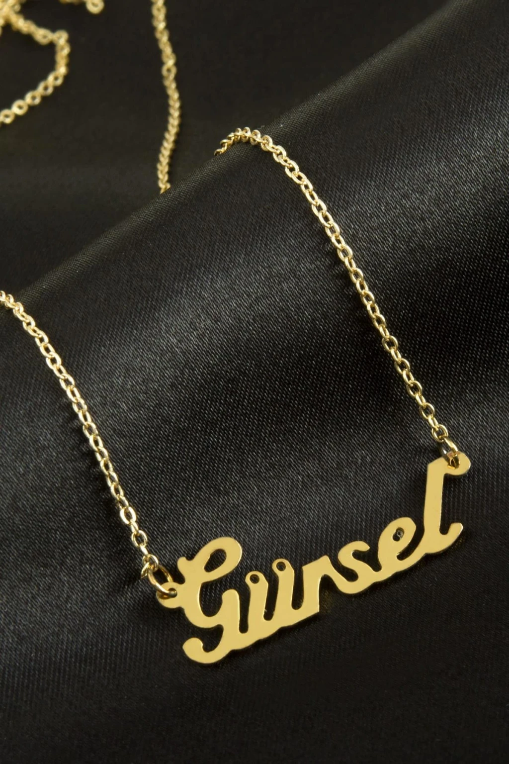 Gürsel İsimli Kolye. İsimli kolye pirinç madeninden ve altın kaplamalıdır. Kişiye özel üretilmektedir.Yazdırmak istediğiniz ismi bize mesaj olarak iletmeniz gerekmektedir. Kullanıma bağlı olarak uzun süre kullanıma uygundur. Ürün malzemesi 1.sınıf kalitededir. Ürün ve zinciri sarı renktedir. Ürün zincir boyu 45 cm ve ürün üzerindeki isimler yaklaşık 3 cmdir. İsim boyları ürün ismine göre degişiklik göstermektedir.