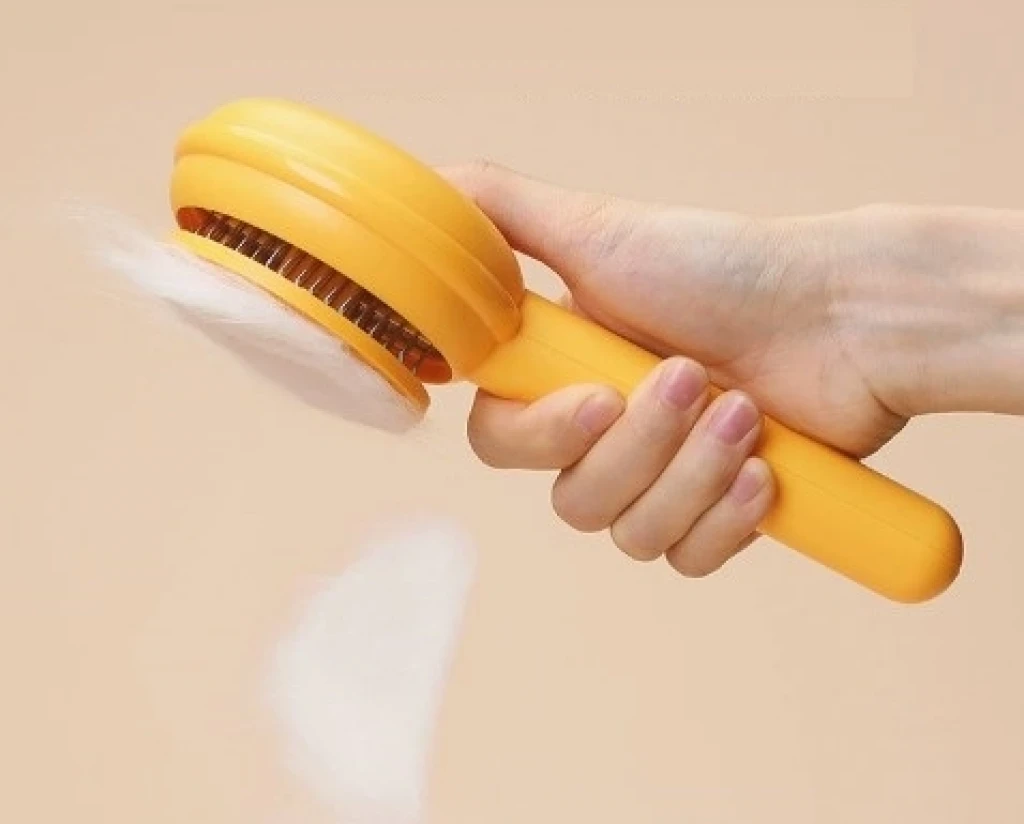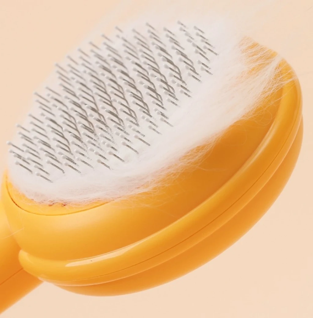 Tek Tuşla Kolay Temizlik: Tarağın arkasındaki düğmeye bastığınızda, toplanan tüyler saniyeler içinde yüzeye itilir ve tek hamlede temizlenir.