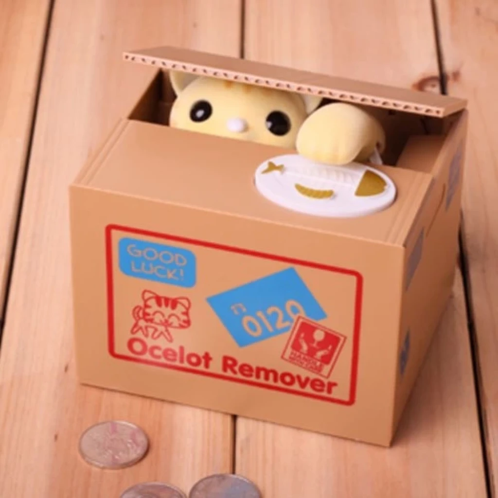 Hırsız Para Çalan Kedi KumbaraParayı aldıktan sonra ses çıkarır40 adete yakın para saklayabilir2 adet AA kalem pille çalışırPlastik malzemeden üretilmiştirÜRÜN EBATIYÜKSEKLİK 12 cmGENİŞLİK 10 cmDERİNLİK 9.5 cm