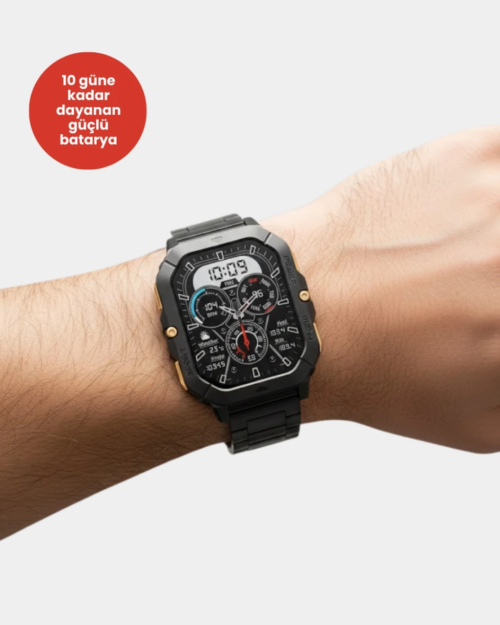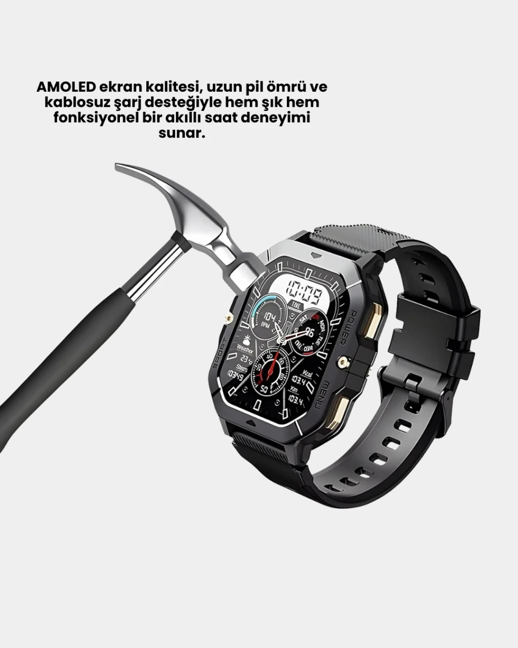 Günlük hayatı daha düzenli ve kontrollü hale getiren bu akıllı saat, bildirim takibi sayesinde telefonunuza gelen çağrı ve mesajları bileğinizden görmenizi sağlar. Müzik kontrolü, zamanlayıcı ve spor modları gibi özellikler günlük kullanımda büyük kolaylık sunar.AMOLED ekran, yüksek kontrast ve parlaklık sunarak modern bir görüntü deneyimi sağlar. Kablosuz şarj özelliği, kablo karmaşasını ortadan kaldırır. Uzun pil ömrü sayesinde seyahatlerde ve yoğun günlerde güvenle kullanılabilir.Hem iş hem sosyal yaşam için çok yönlü bir çözümdür.