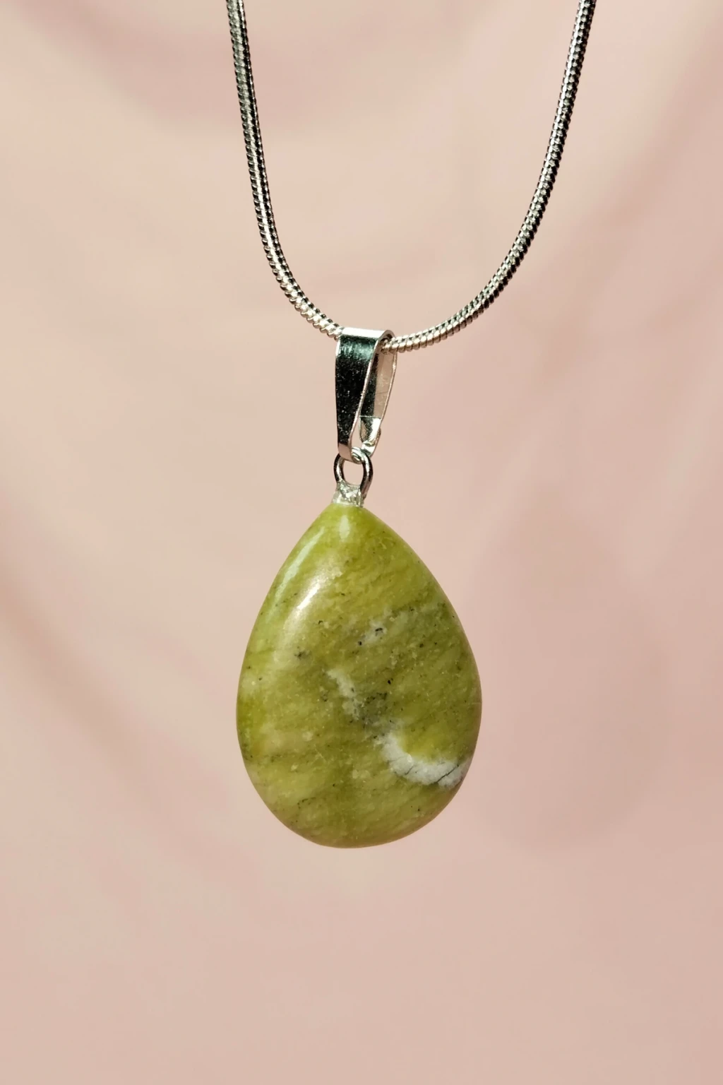 İEG® Unakit Doğal Taşı Zincirli El Yapımı Tasarımlı Kolye Uç: 3,5 cm Zincir: 20 cm Kutulu