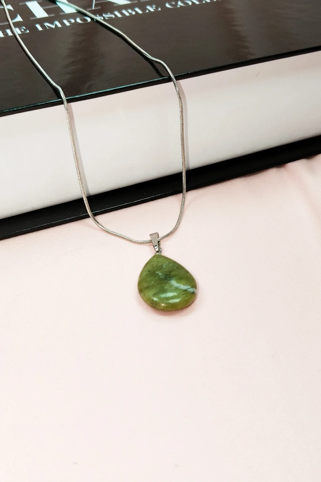 İEG® Yeşim Doğal Taşı Zincirli El Yapımı Tasarımlı Kolye Uç: 3,5 cm Zincir: 20 cm Kutulu