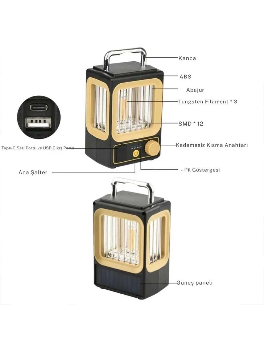 ieg™ Ampul Solar Şarj Edilebilir 12 Led 1 Rustikli Led Kamp Lambası