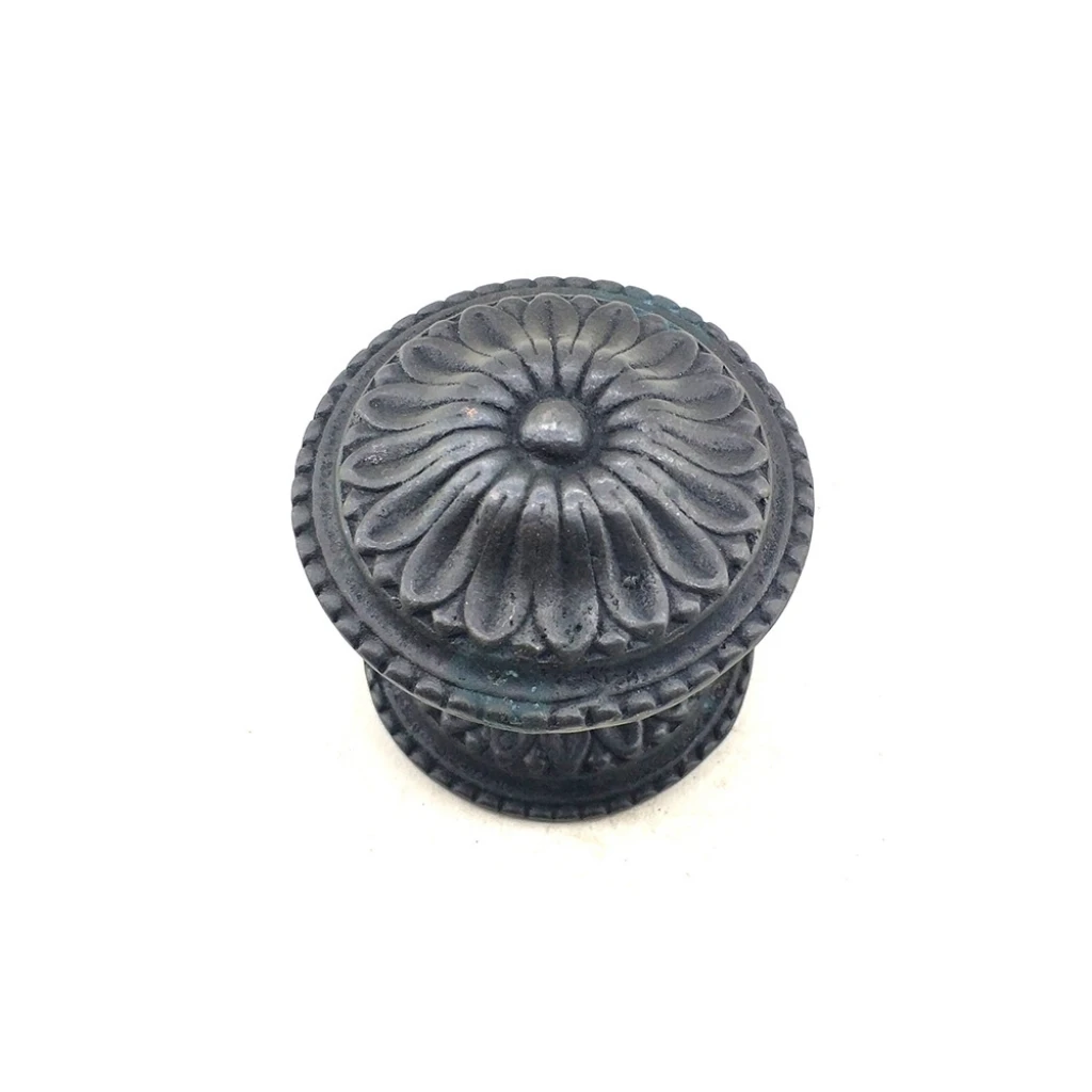 - 1 adet Antika Tarz Dekoratif Pirinç Papatya Kapı Babası - 73 mm, Oksit