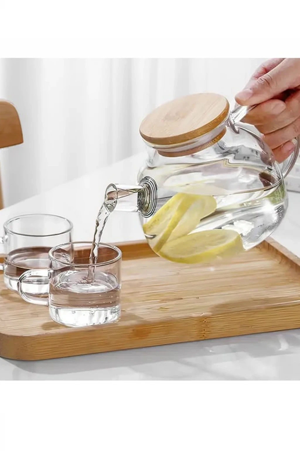 ieg™ Bambu Kapaklı Borosilikat Cam Demlik 1000ml -CM-2000
