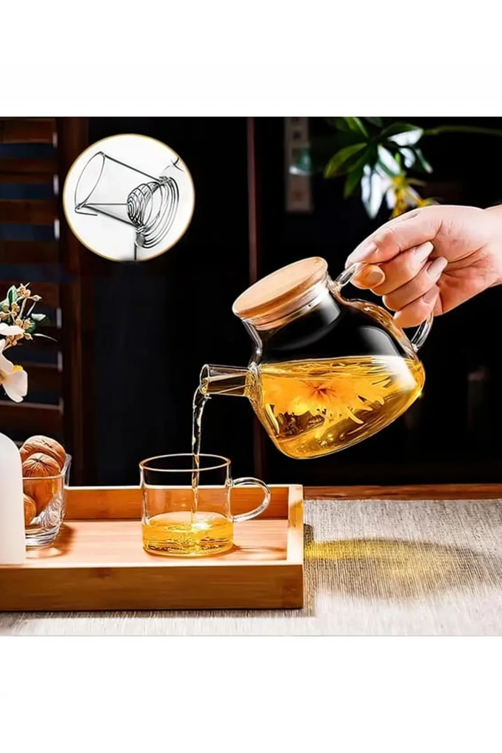 Bambu Kapaklı Borosilikat Cam Demlik 1000ml -CM-2000