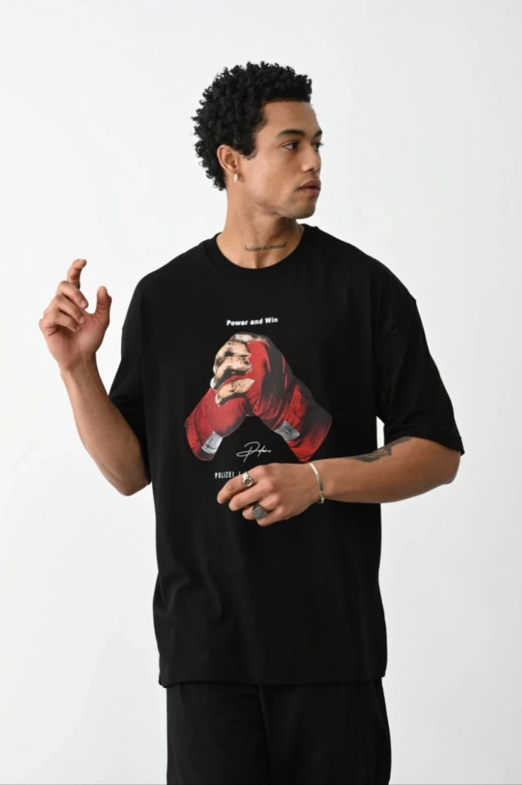 ieg™ Bisiklet Yaka Oversize Baskılı T-Shirt - Siyah -