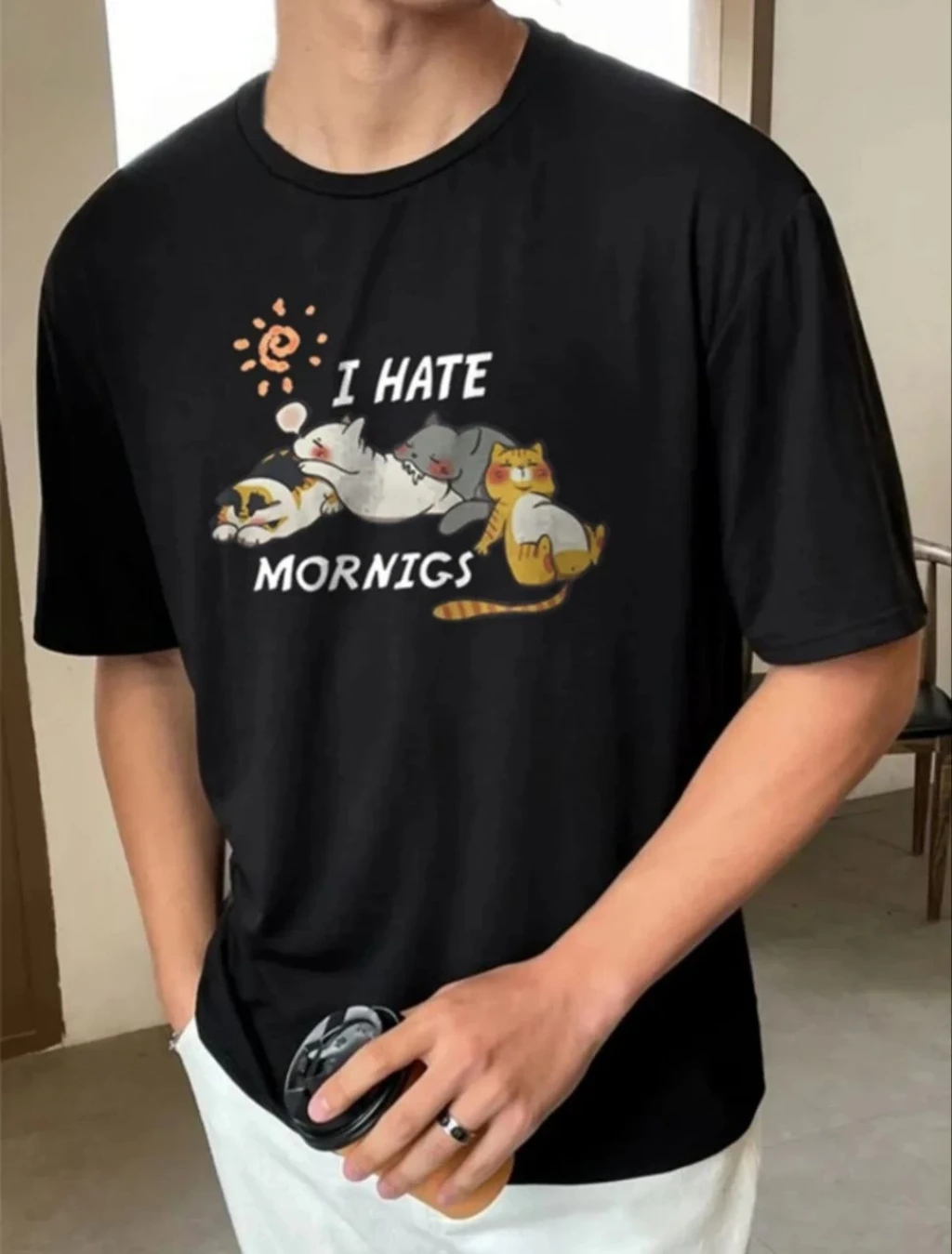 ieg™ Bisiklet Yaka Oversize Baskılı T-Shirt - Siyah -