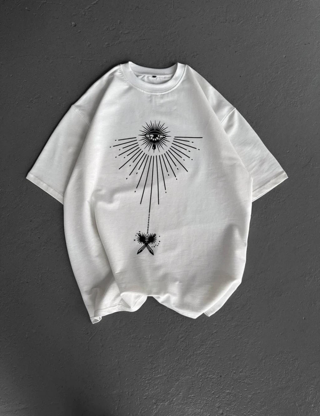ieg™ Bisiklet Yaka Baskılı Oversize T-Shirt - Beyaz -