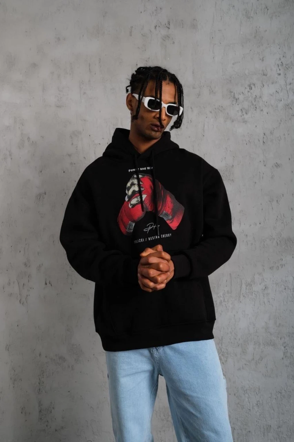 ieg™ Eldiven Baskılı Kapüşonlu Sweat - Siyah -