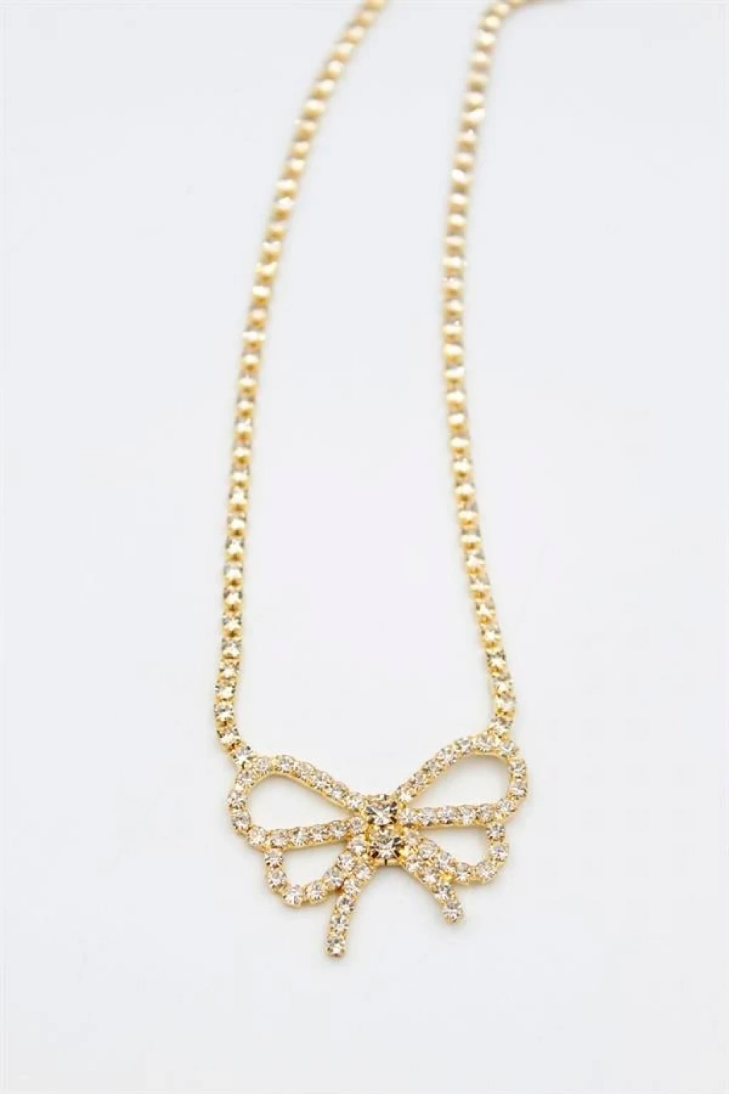 Pirinç Gold Renk Zirkon Taşlı Topçuk Zincir Serenay Model Kadın Kolye