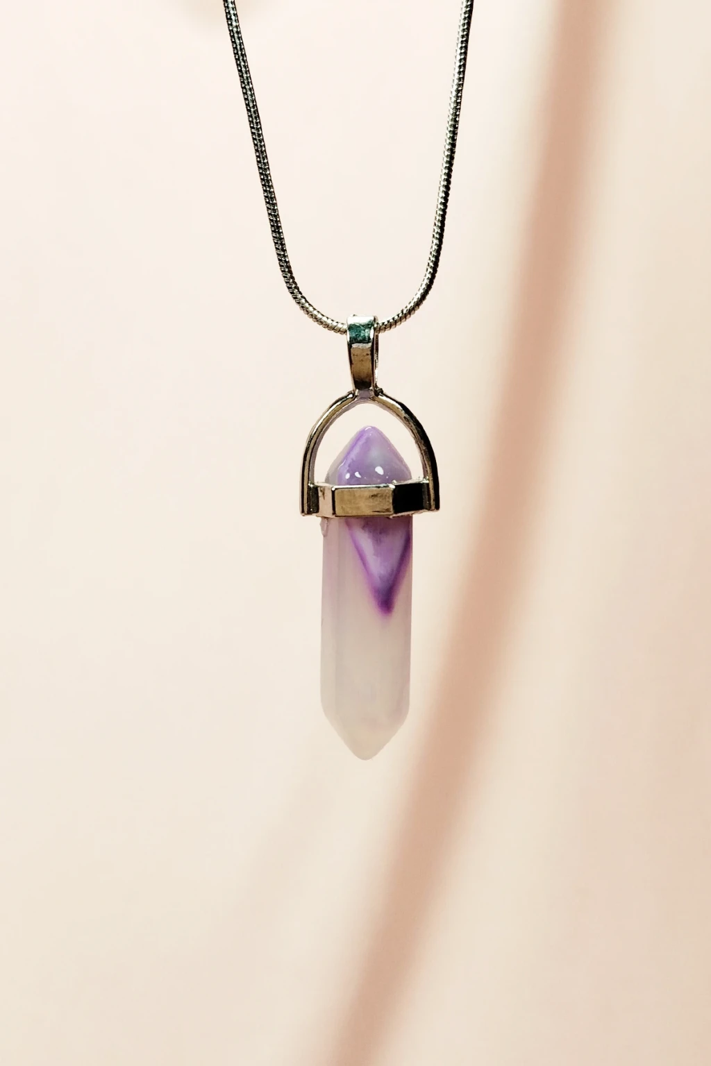 İEG® Kalsedon Doğal Taşı Zincirli El Yapımı Kolye Uç: 1,5 cm Zincir: 20 cm Kutulu
