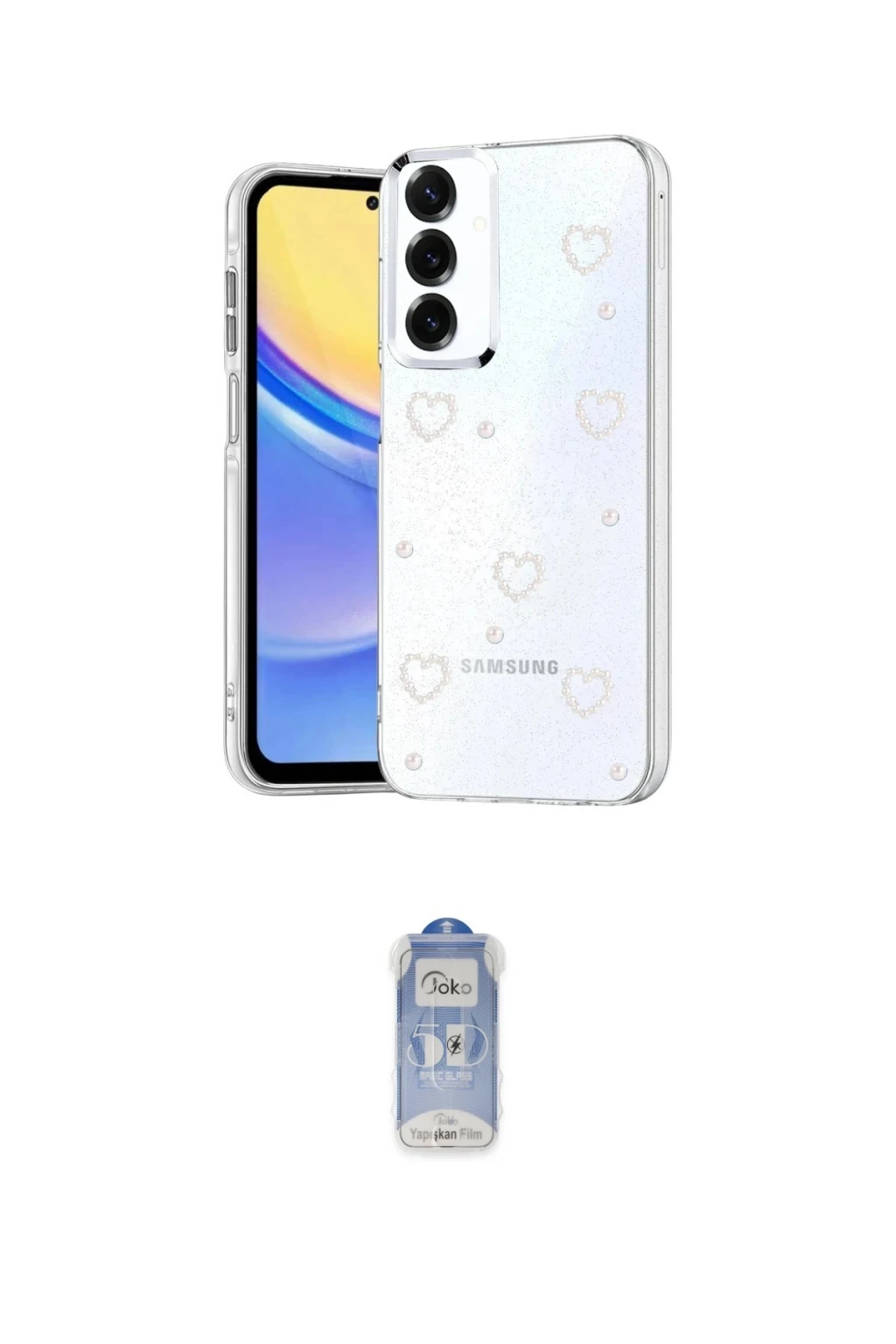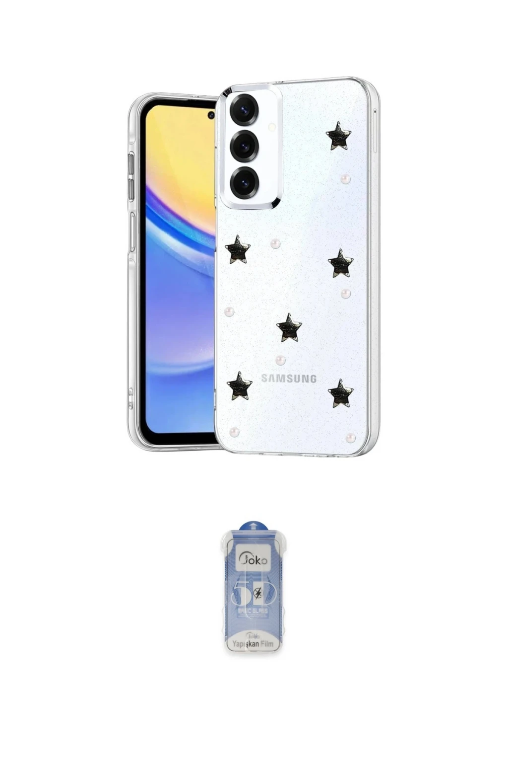 Galaxy A54 5G Kılıf Yörünge Form - Siyah Joko Magic 5D Cam, Galaxy A54 5G modeli için kılıf ve ekran koruyucuyu bir araya getiren uyumlu bir settir. Kılıfta Desen 1 tonu ile görünümü tamamlar, ekran koruyucu ile günlük kullanımda dengeli koruma sunar. Newface Samsung Galaxy A54 5G Fiyonk Desenli Kapak - Desen 1 cihazın gövdesini desteklerken, Joko Samsung Galaxy A54 5G Joko Magic 5D Cam ekranı çizilme ve darbelere karşı tamamlayıcı koruma sağlar. Tek paketle hem görünümü hem de temel korumayı hızlıca tamamlayabilirsiniz.