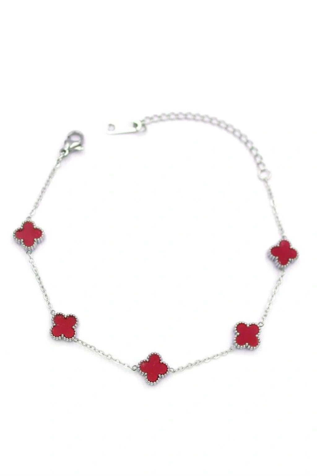 İEG® Gümüş VC Yonca Bileklik - Bordo