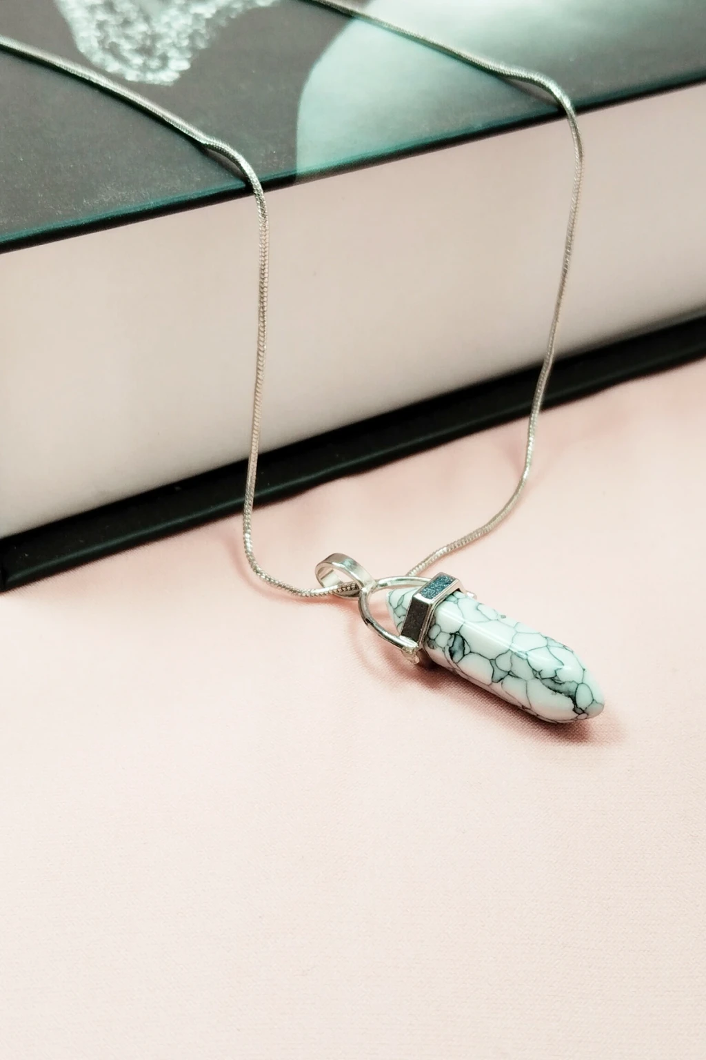 Havlit Doğal Taşı Zincirli El Yapımı Tasarımlı Kolye Uç: 3,5 cm Zincir: 20 cm Kutulu