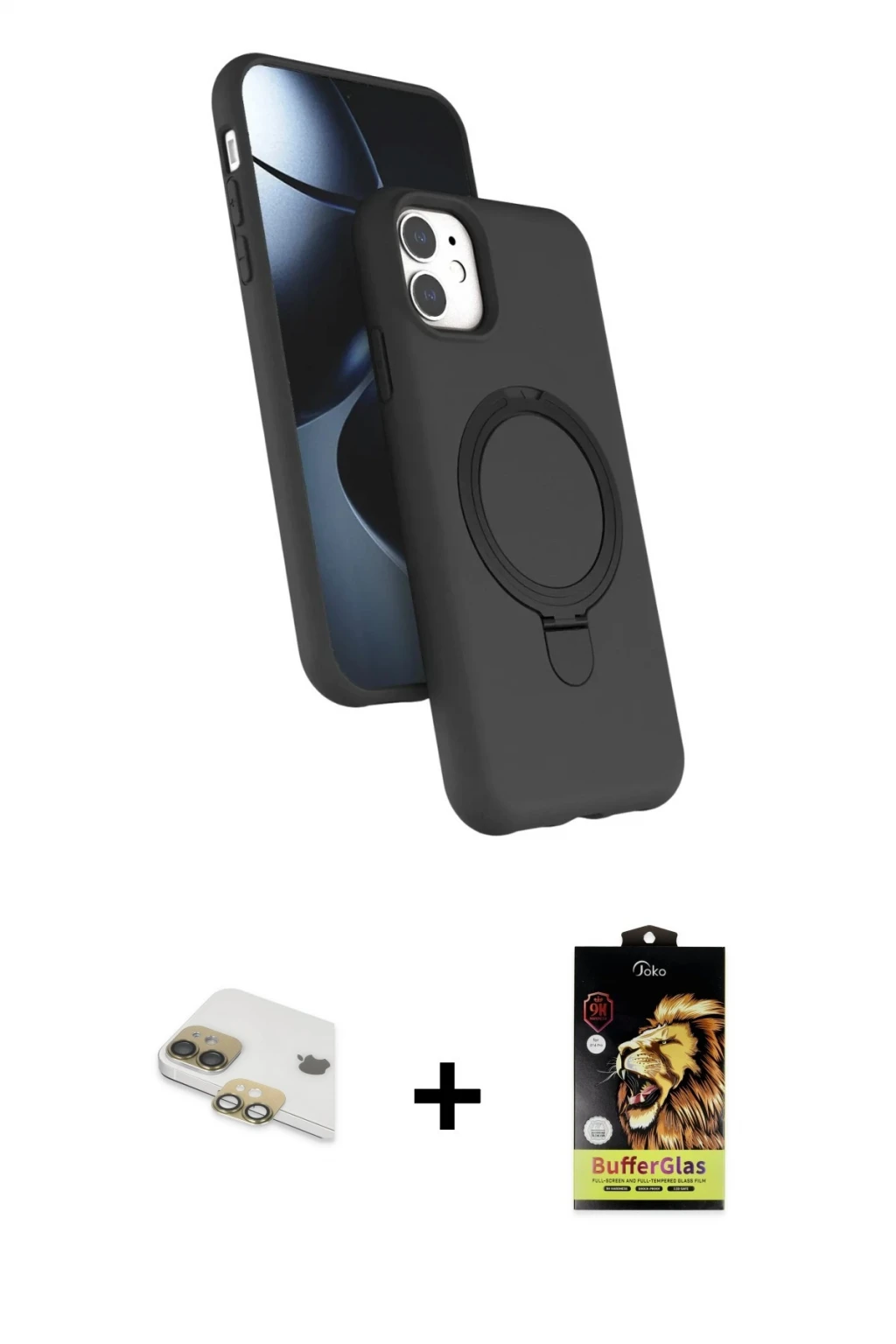 iPhone 11 İz Işık Koleksiyonu - Siyah Buffer Cam Ekran Koruyucu + Gold Pers Alüminyum Kamera Lens, iPhone 11 modeli için kılıf, ekran koruyucu ve kamera lens koruyucuyu bir araya getiren premium bir settir. Görünümde kılıfta Açık Pembe tonu, lens koruyucuda Gold detay ile bütünlüklü ve dikkat çekici bir stil sunar. Set; günlük kullanıma uygun şık koruma, ekranı çizilme ve darbelere karşı destekleyen koruma ve kamera bölümünü ekstra güvenceye alan koruma sağlayarak cihazınızı günlük kullanıma karşı destekler. Tek paketle hem estetik hem de kapsamlı korumayı pratik şekilde tamamlayabilirsiniz.