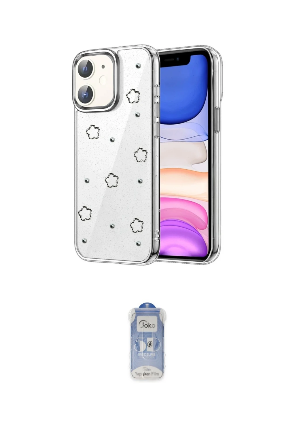 iPhone 11 Kılıf Yörünge Form - Siyah Joko Magic 5D Cam, iPhone 11 modeli için kılıf ve ekran koruyucuyu bir araya getiren uyumlu bir settir. Kılıfta Desen 1 tonu ile görünümü tamamlar, ekran koruyucu ile günlük kullanımda dengeli koruma sunar. Newface Apple iPhone 11 Fiyonk Desenli Kapak - Desen 1 cihazın gövdesini desteklerken, Joko iPhone 11 Joko Magic 5D Cam ekranı çizilme ve darbelere karşı tamamlayıcı koruma sağlar. Tek paketle hem görünümü hem de temel korumayı hızlıca tamamlayabilirsiniz.