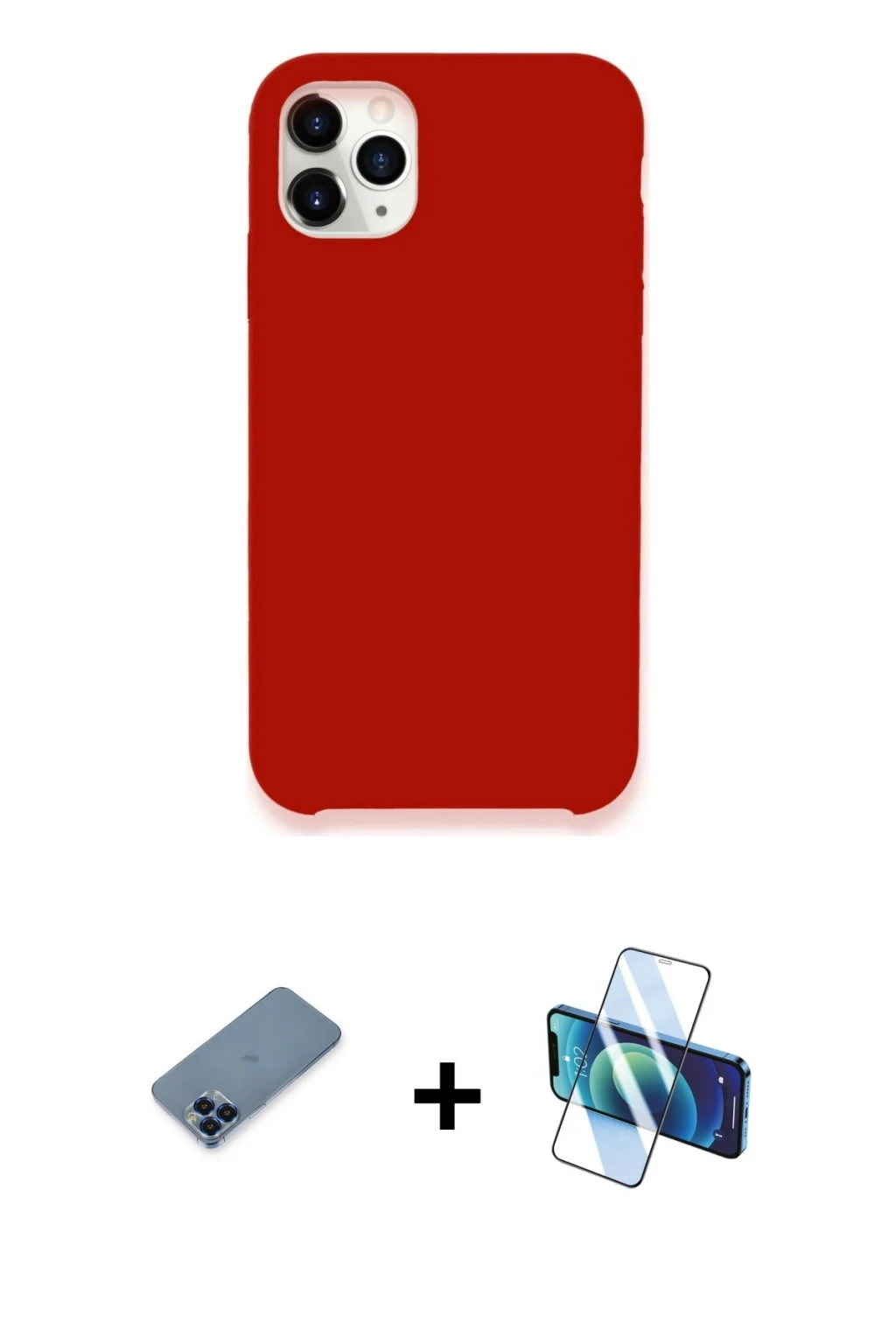 iPhone 11 Pro Max Kılıf Zirve Modern Özel Seri - Siyah 3D Antistatik Cam Ekran Koruyucu + Mavi Metal Kamera Lens Koruma Cam
