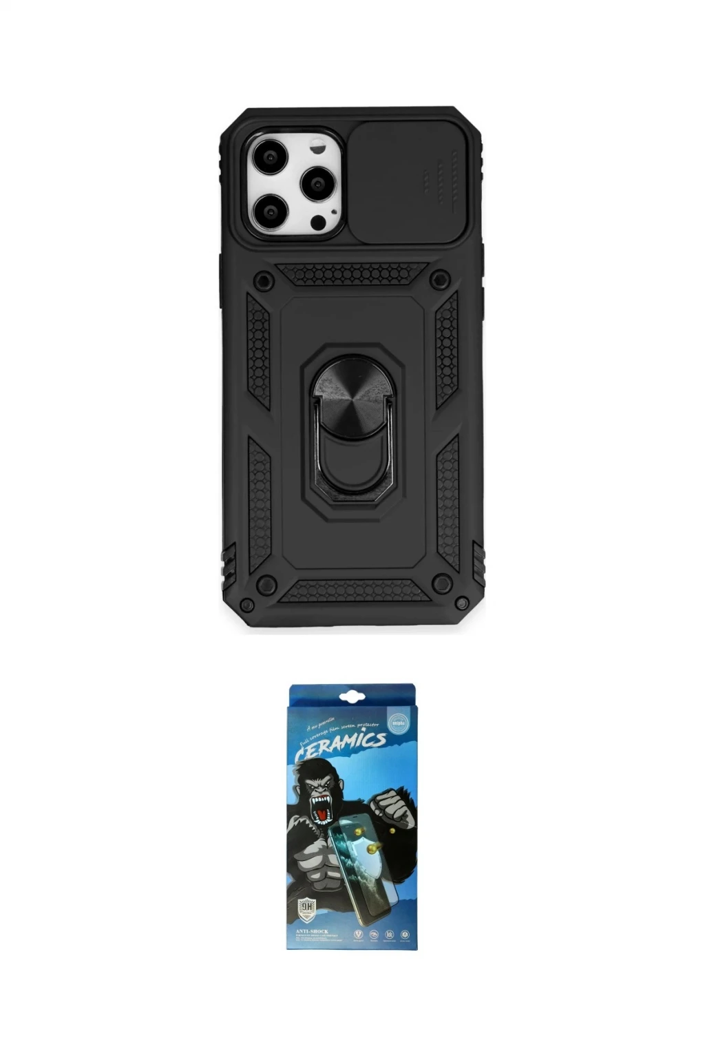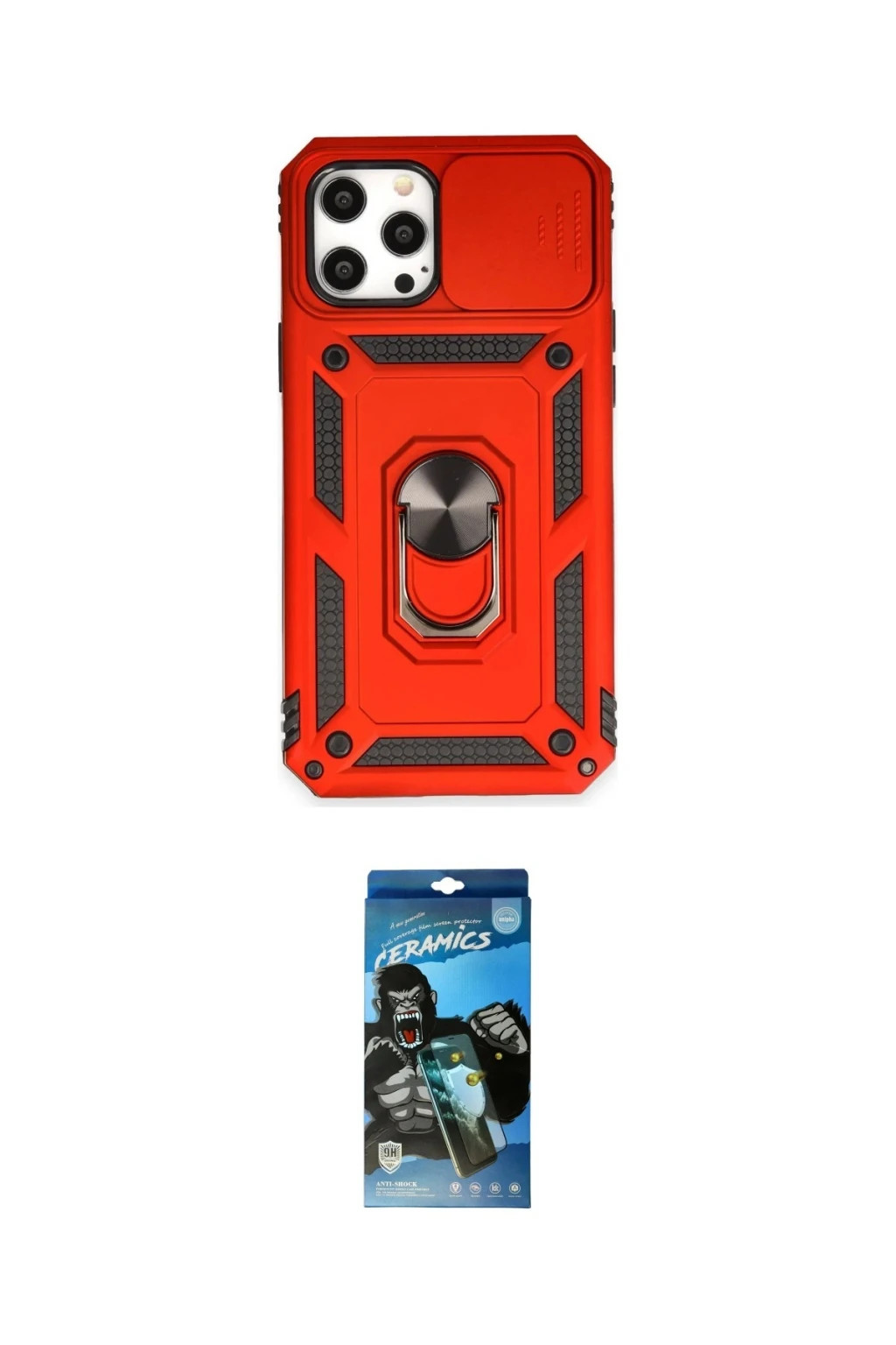 iPhone 12 Pro Max Kılıf Ahenk Klasik - Siyah 34D Izgaralı Cam, iPhone 12 Pro Max modeli için kılıf ve ekran koruyucuyu bir araya getiren uyumlu bir settir. Kılıfta Kırmızı tonu ile görünümü tamamlar, ekran koruyucu ile günlük kullanımda dengeli koruma sunar. Newface iPhone 12 Pro Max Kılıf Pars Lens Yüzüklü Silikon - Kırmızı cihazın gövdesini desteklerken, Newface iPhone 12 Pro Max 34D Izgaralı Cam ekranı çizilme ve darbelere karşı tamamlayıcı koruma sağlar. Tek paketle hem görünümü hem de temel korumayı hızlıca tamamlayabilirsiniz.