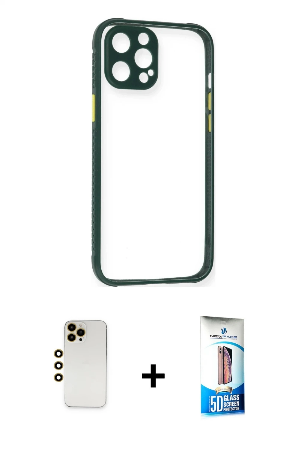 ieg™ iPhone 13 Pro Max Kılıf Atlas Form - Siyah Bilvis 5in1 3D Magic Cam Ekran Koruyucu + Renkli Kamera Lens Koruma Cam - MI
