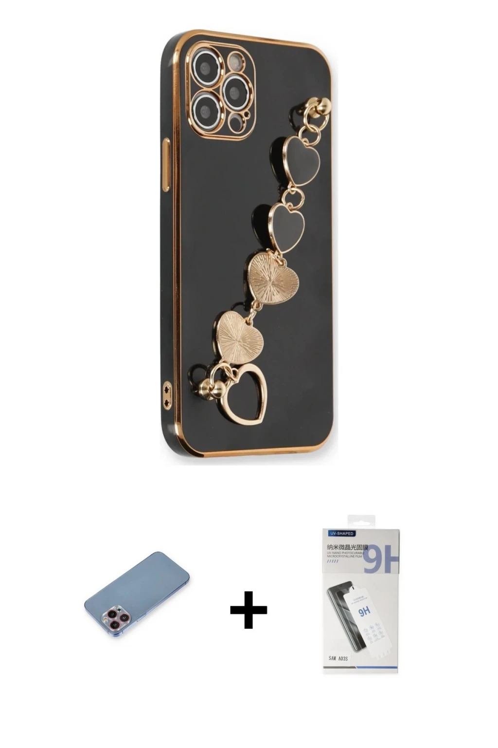 ieg™ iPhone 13 Pro Max Kılıf Yadigar Klasik - Siyah Bilvis 5in1 5D Magic Hayalet Cam Ekran Koruyucu + Neon Fosforlu Kamera Lens - YL