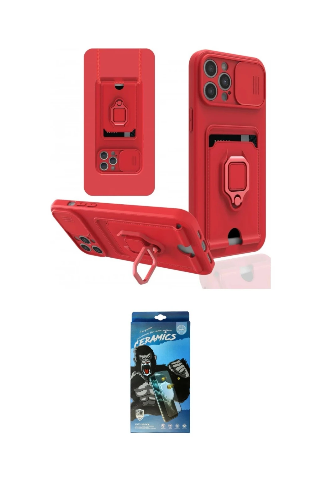 iPhone 12 Pro Max Kılıf Vadi Form Prime - Siyah 34D Izgaralı Cam, iPhone 12 Pro Max modeli için kılıf ve ekran koruyucuyu bir araya getiren uyumlu bir settir. Kılıfta Kırmızı tonu ile görünümü tamamlar, ekran koruyucu ile günlük kullanımda dengeli koruma sunar. Newface iPhone 12 Pro Max Kılıf Zuma Kartvizitli Yüzüklü Silikon - Kırmızı cihazın gövdesini desteklerken, Newface iPhone 12 Pro Max 34D Izgaralı Cam ekranı çizilme ve darbelere karşı tamamlayıcı koruma sağlar. Tek paketle hem görünümü hem de temel korumayı hızlıca tamamlayabilirsiniz.