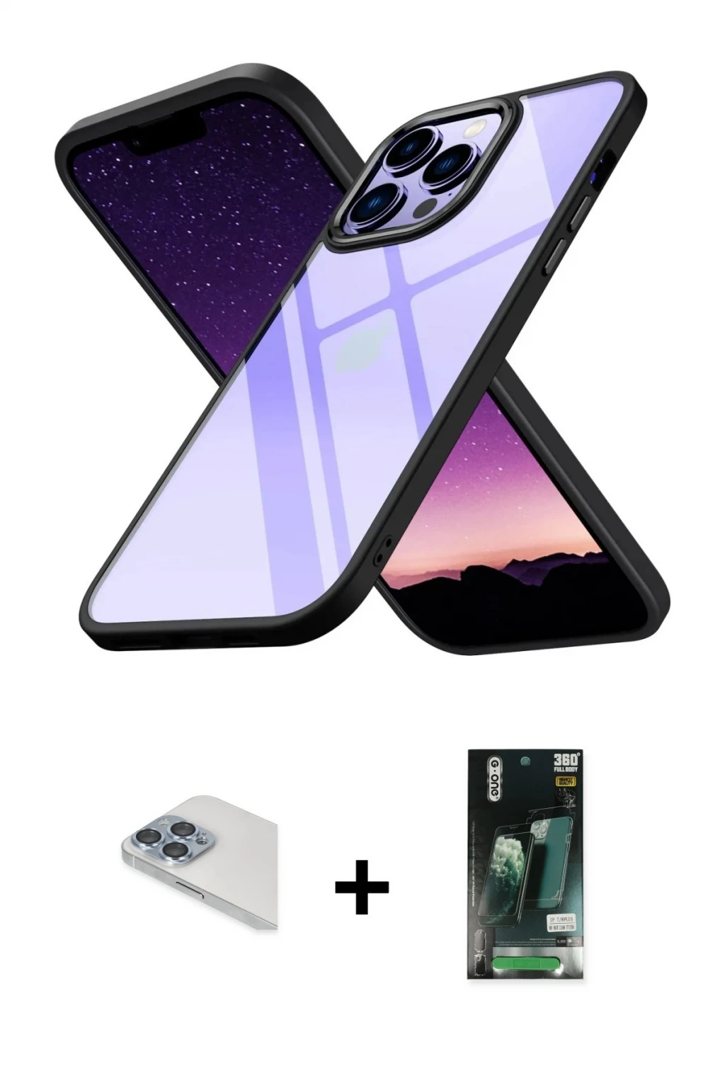 ieg™ iPhone 14 Pro Max Kılıf Pusula Asil Koleksiyonu - Şeffaf Royal Nano Ekran Koruyucu + Band Metal Kamera Lens - GD