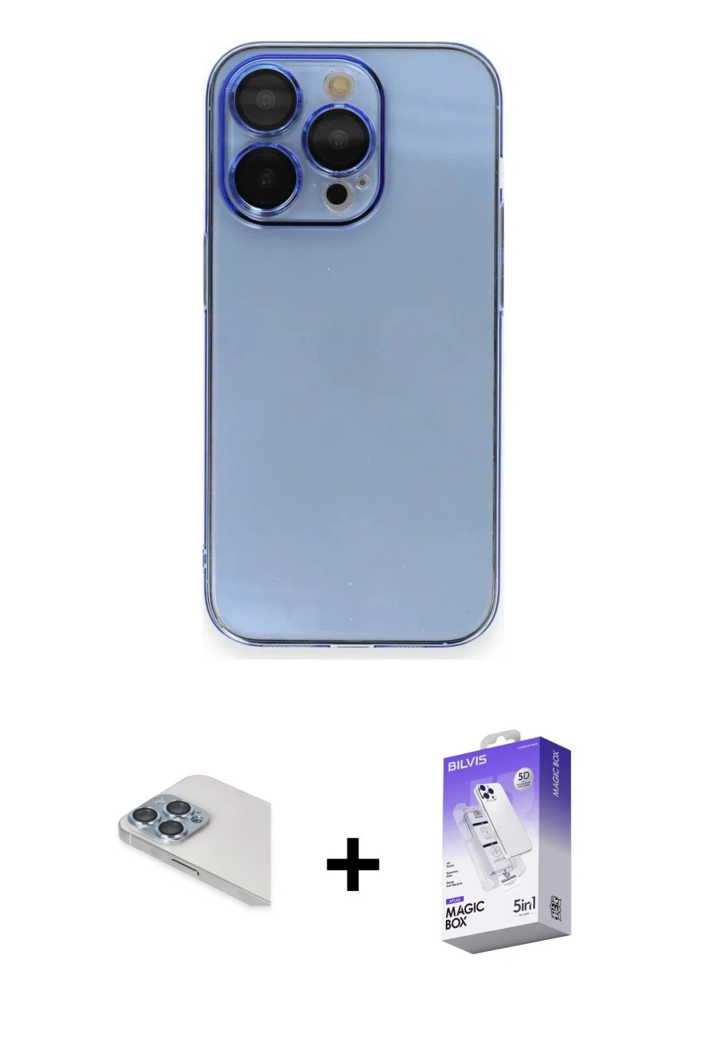 iPhone 13 Pro Max Kılıf Siluet Minimal Özel Seri - Siyah Bilvis 5in1 3D Magic Cam Ekran Koruyucu + Sierra Blue Pers Alüminyum Kamera Lens